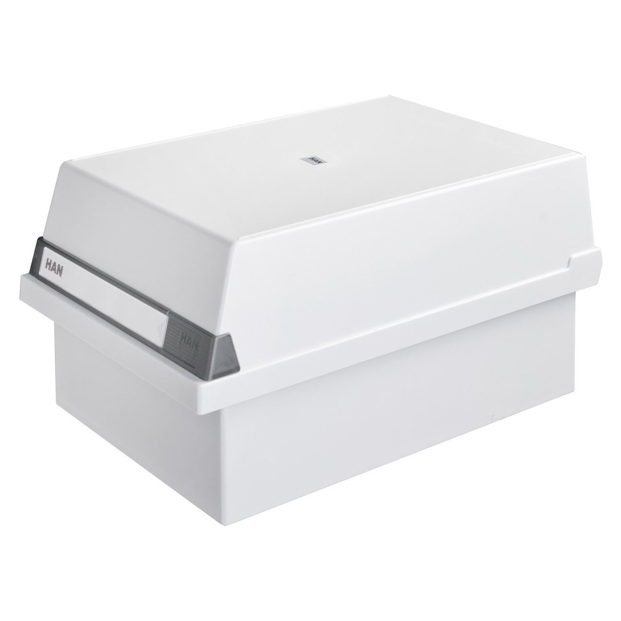 Kunststoff, unbestückt, inkl. 2 Stützplatten mit ver- schiebbarem Sichtreiter, möbelschonende Gummifüße, das Unterteil kann platzsparend in den Deckel gestellt werden, Maße: (B)235 x (T)360 x (H)190 mm (955-11)