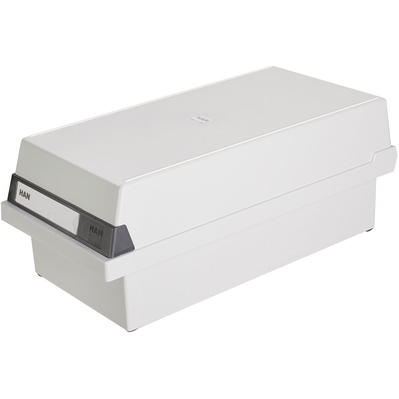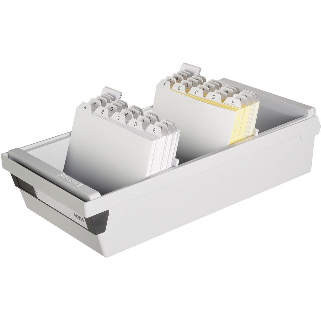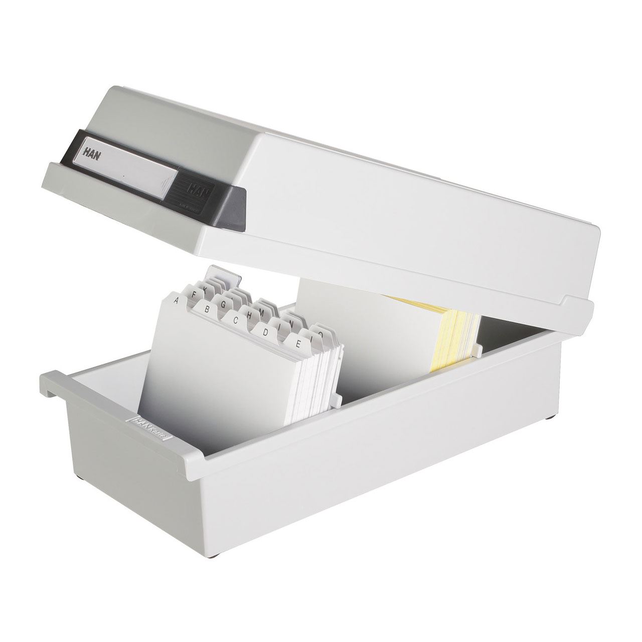 - Karteikasten DIN A6 quer, für 1.300 Karten, inkl. 2 Stützplatten und verschiebbaren Sichtreitern