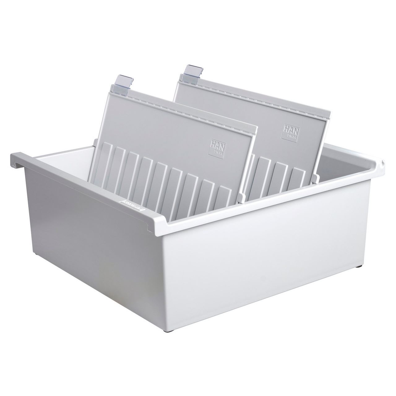 HAN 954-0-11. Format: A4, Material: Kunststoff, Polystyrol (PS), Produktfarbe: Grau. Breite: 322 mm, Tiefe: 346 mm, Höhe: 138 mm