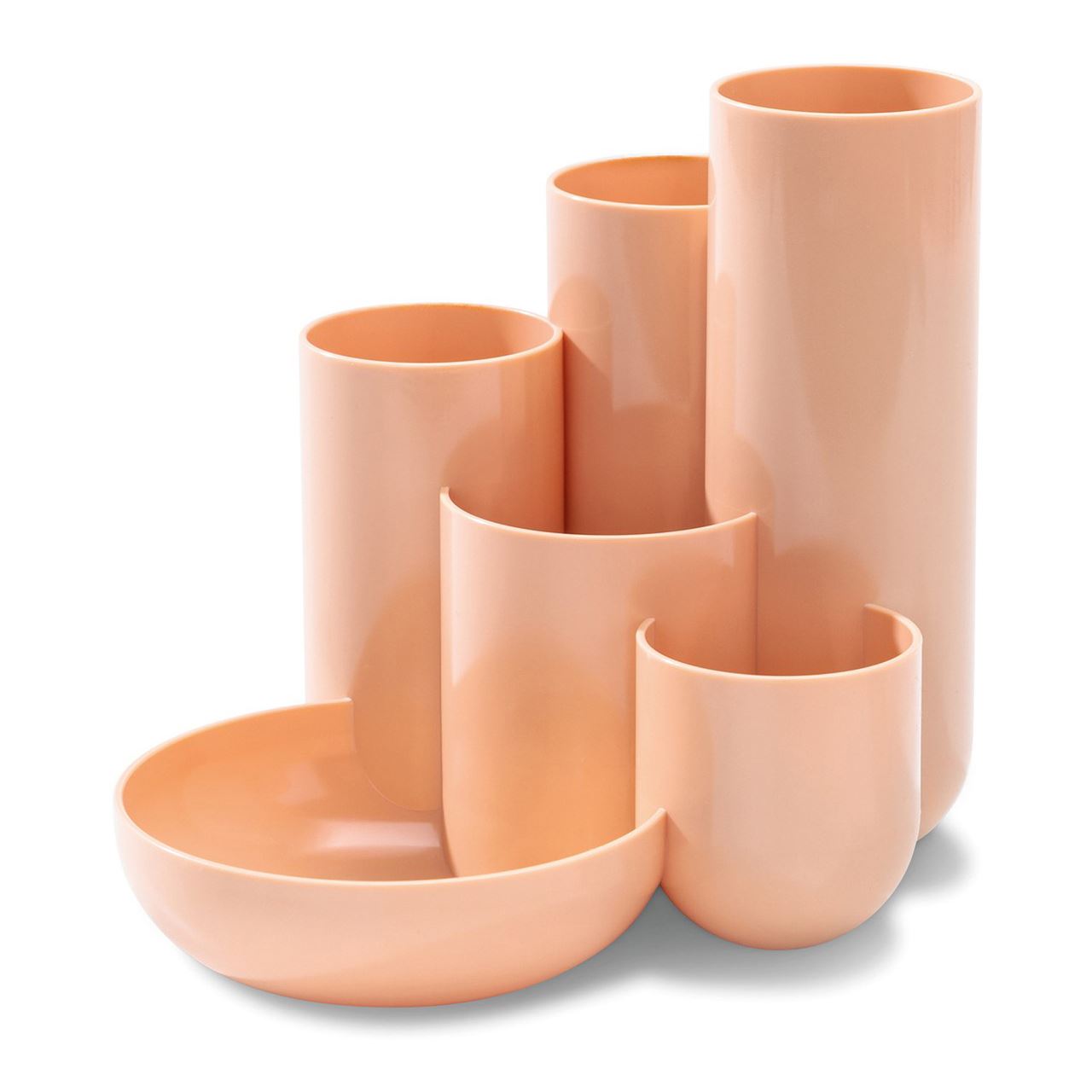 Schreibtischköcher CAMPUS mit 5 in Höhe und Durchmesser unterschiedlichen Röhren und 1 flachen Schale zur Kleinteile-Organisation. Die moderne Interpretation eines Büroklassikers – zeitgemäßes Design trifft auf hohe Qualität. Der elegante Schreibtischköcher eignet sich zur Organisation und Ablage von Schreibtisch, Beauty- oder Künstlerbedarf. Die glänzenden Oberflächen harmonieren mit den geschwungenen Formen. In den 5 Röhren finden auch längere und/oder schwere Gegenstände einen sicheren Stand. Kleinteile lassen sich perfekt in der Schale unterbringen. Die große Grundfläche sorgt auch in gefülltem Zustand für einen sicheren Stand. Made in Germany. Außenmaße (B x T x H): 131 x 154 x 137 mm. Material: hochwertiger Kunststoff, Polystyrol (PS).