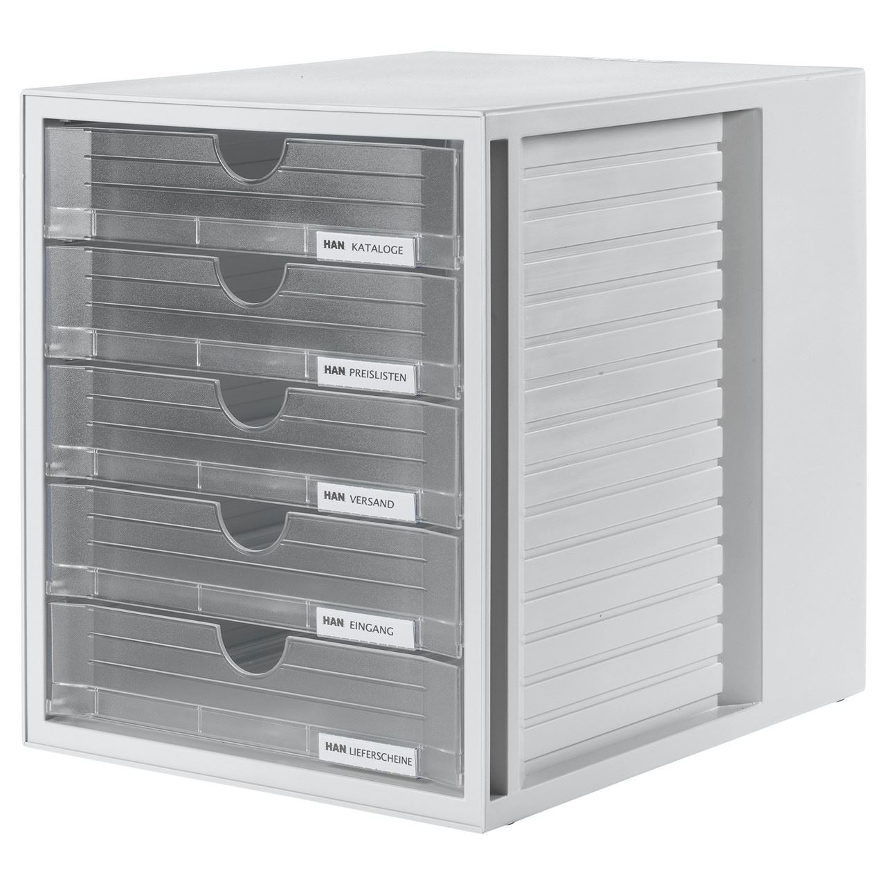 HAN Schubladenbox SYSTEMBOX. Material: Polystyrol, Produktfarbe: Grau, Durchscheinend, Format: A4. Breite: 275 mm, Tiefe: 330 mm, Höhe: 320 mm. Menge pro Packung: 1 Stück(e)