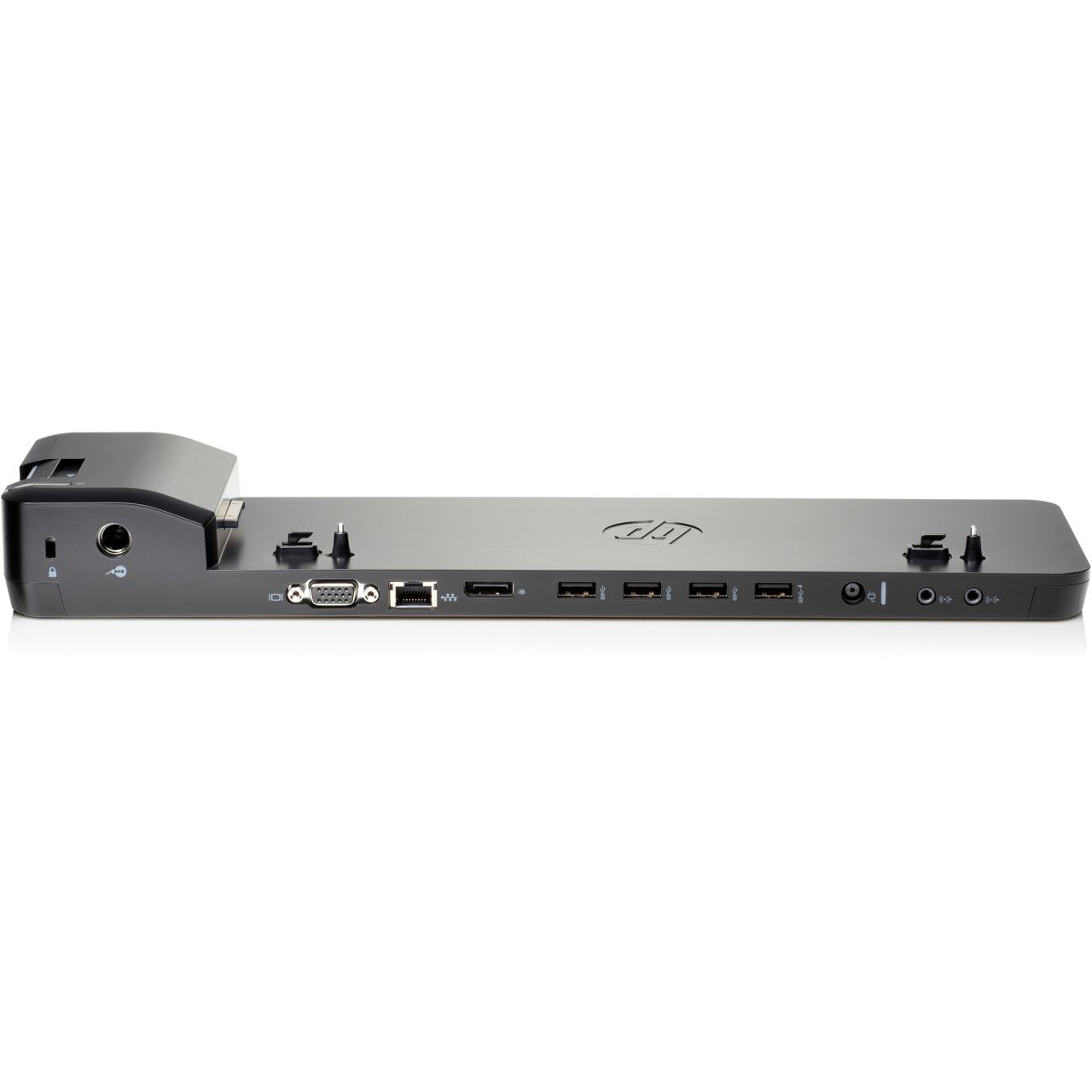 Die exklusiv für ultraschlanke HP EliteBook Notebook PCs entwickelte HP UltraSlim Dockingstation erweitert Bildschirm-, Netzwerk-, und Gerätekonnektivität, damit Sie den ganzen Tag noch produktiver sein können – und das alles durch ein einfaches One-Click-Dock mit seitlichem Einschub.