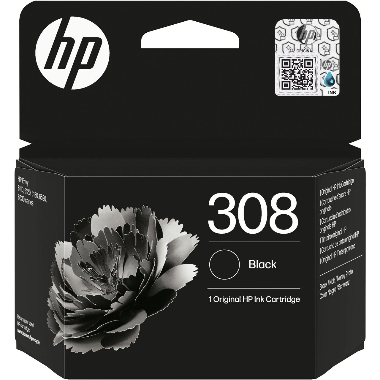 HP 308 Schwarz Original Druckerpatrone. Tintenpatronenkapazität: Standardertrag, Schwarzer Tintentyp: Tinte auf Pigmentbasis, Versorgungstyp: Einzelpackung, Druckfarben: Schwarz, Menge pro Packung: 1 Stück(e), Seitenergebnis schwarze Tinte: 160 Seiten