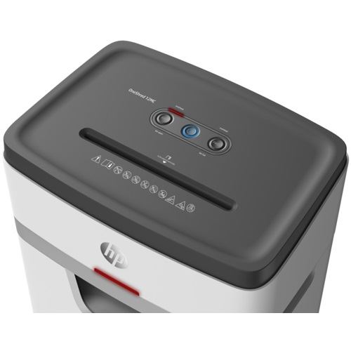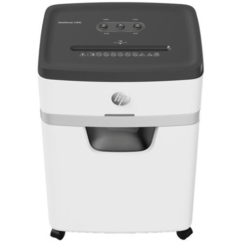 HP OneShred 12MC. Aktenvernichter Typ: Mikrogeschnittene Zerkleinerung, Arbeitsbreite: 22 cm, Aktenvernichter Größe: 2 mm. Stromverbrauch (Standardbetrieb): 600 W, AC Eingangsspannung: 220 - 240 V, AC Eingangsfrequenz: 50/60 Hz. Breite: 400 mm, Tiefe: 271,5 mm, Höhe: 590 mm