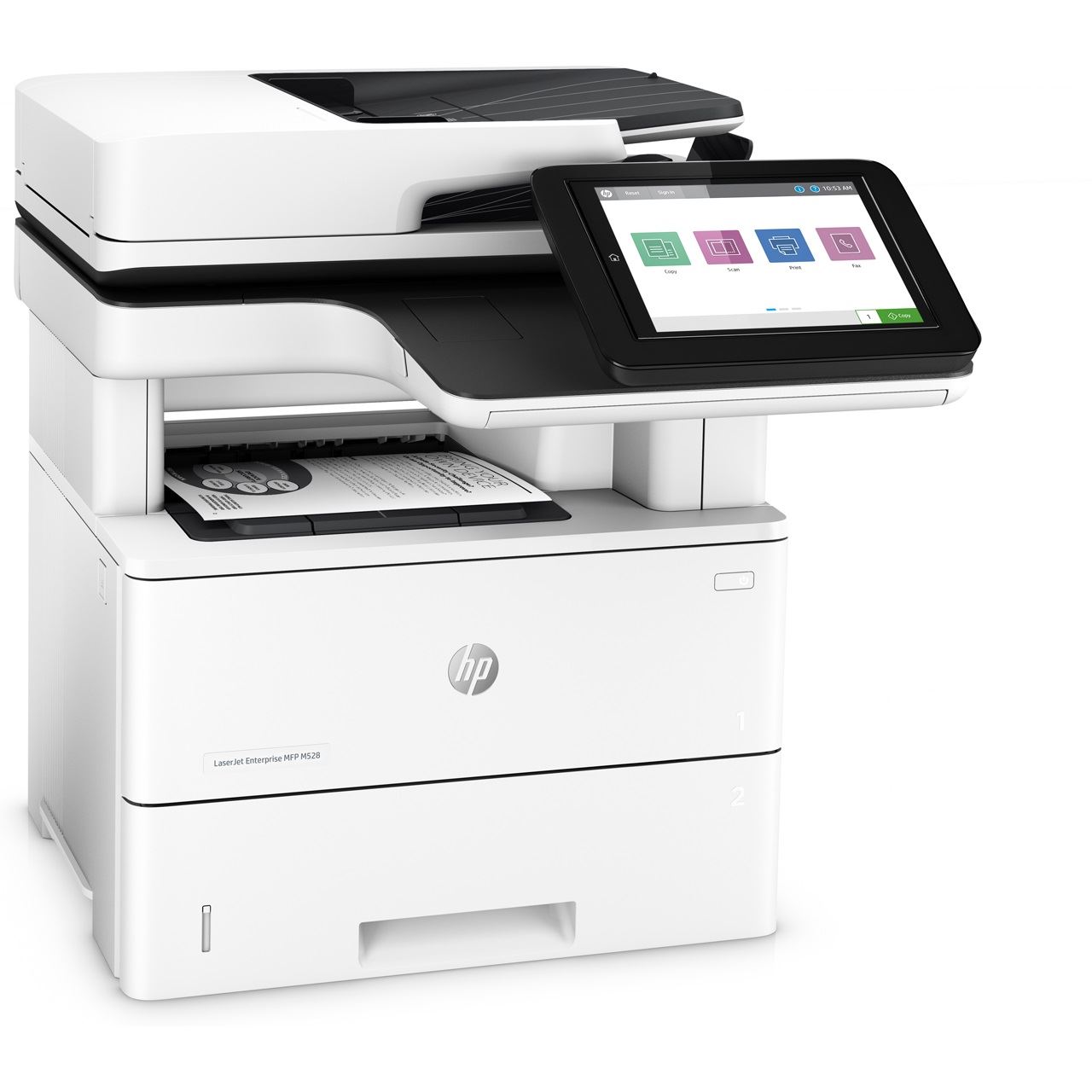 HP LaserJet Enterprise MFP M528dn. Drucktechnologie: Laser, Drucken: Monodruck, Maximale Auflösung: 1200 x 1200 DPI. Kopieren: Monokopie, Max. Auflösung: 600 x 600 DPI. Scannen: Farbscan, Optische Scan-Auflösung: 600 x 600 DPI. Faxen: Mono-Faxen. Duplexfunktion: Drucken, Kopieren. Maximale Papiergröße der ISO A-Serie: A4. WLAN. Direktdruck. Produktfarbe: Schwarz, Weiß