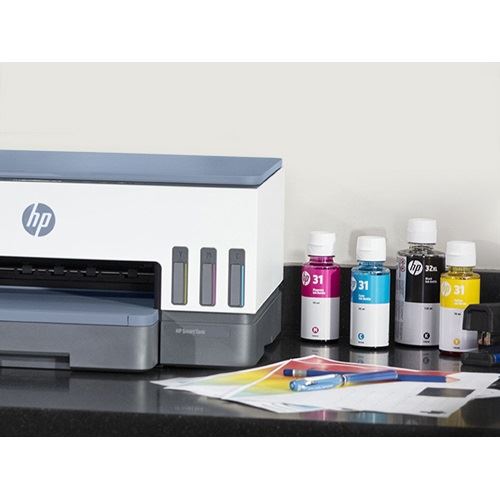 | Ersatzpatronen: | HP 32XL Schwarz 135 ml Flasche (ca. 6.000 Seiten), HP 31 Cyan 70 ml Flasche (ca. 8.000 Seiten), HP 31 Magenta 70 ml Flasche (ca. 8.000 Seiten), HP 31 Gelb 70 ml Flasche (ca. 8.000 Seiten); Weitere Informationen zu Füllstand und Reichweite finden Sie unter www.hp.com/go/learnaboutsupplies |