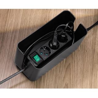 - Kabelsalat samt Steckdosenleiste ordentlich verstecken ,- Kunststoffbox mit beidseitigen Kabelschlitzen für einfaches Verstauen ,- Geräte bleiben angeschlossen ,- Gummifüße für rutschfesten Stand ,- ideal für Büro und Zuhause - für ein stilvol