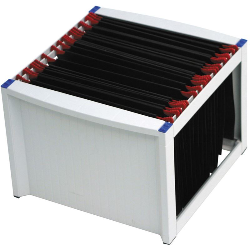 aus Polystyrol, stapelbar, mit Gummifüßen mit Zwischenraum für Reiter der Hängemappen bei gestapelten Gestellen, Lieferung erfolgt ohne Hängemappen, Maße: (B)360 x (T)380 x (H)260 mm (H6110084)
