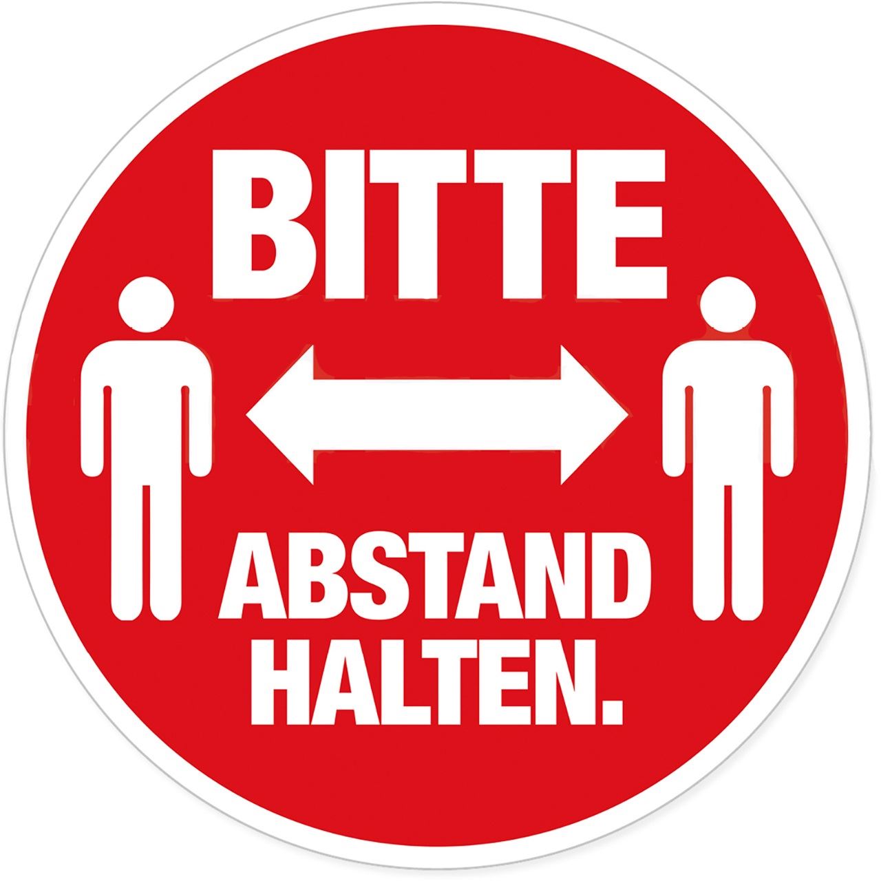 Abstand halten: damit schützen Sie sich und andere. Selbstklebende Schilder aus robuster Folie, wasser-, Öl und Schmutz abweisend, wieder abziehbar, hochwertig bedruckt mit Signalfarbe Rot und Text "Bitte Ab stand halten". Die runden Aufkleber mit einem Ø 20 cm sind einfach und schnell angebracht und halten sicher auf glatten und sauberen Flächen, wie Fußböden, Türen, Schaufenstern, in sanitären Anlagen, auf Fliesen, Schränken und Wänden. Ideal für die Verwendung im Ladengeschäft, Hotel, Restaurant, in Firmen, öffentlichen Einrichtungen, Artzpraxen uvm. Zur korrekten Einhaltung notwendiger Schutz- und Vorsichtsmaßnahmen gegen das Coronavirus / COVID-19 und anderen übertragbaren Infektionen sowie zur Wahrung der Diskretion in Banken, Apotheken, uvm.
