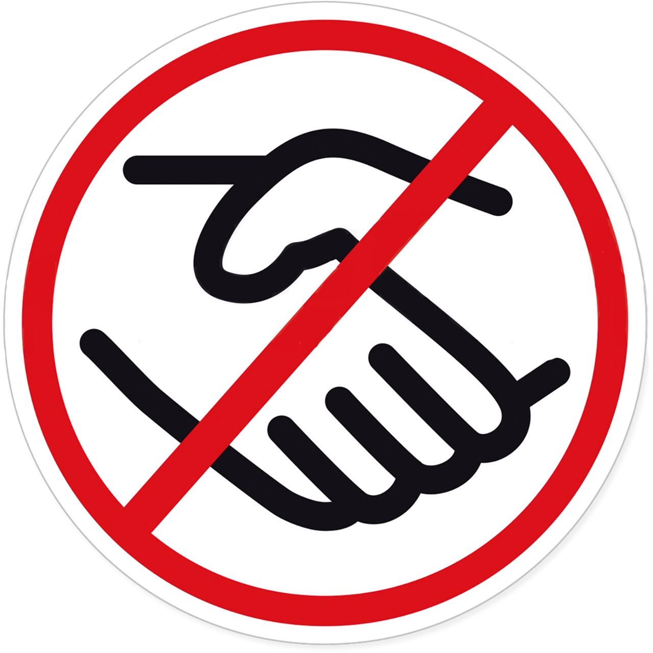 Mit einem Lächeln schützt man sich selbst und andere. Mit dem Hinweisaufkleber "Händeschütteln verboten" machen Sie ganz einfach darauf aufmerksam, dass Sie auf das Begrüßungs- und Verabschiedungsritual verzichten. Das selbstklebende Verbotszeichen aus robuster Folie ist wasser-, Öl und Schmutz abweisend, wieder abziehbar, hochwertig bedruckt. Die runden Aufkleber mit einem Ø 10 cm sind einfach und schnell angebracht und halten sicher auf glatten und sauberen Flächen, wie Türen und Schaufenstern. Ideal für die Verwendung im Büro, Restaurant, Ladengeschäft, Hotel, in öffentlichen Einrichtungen, Artzpraxen uvm. Zur korrekten Einhaltung notwendiger Schutz- und Vorsichtsmaßnahmen gegen das Coronavirus / COVID-19 und anderen übertragbaren Infektionen.