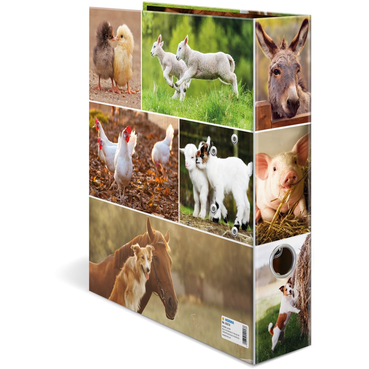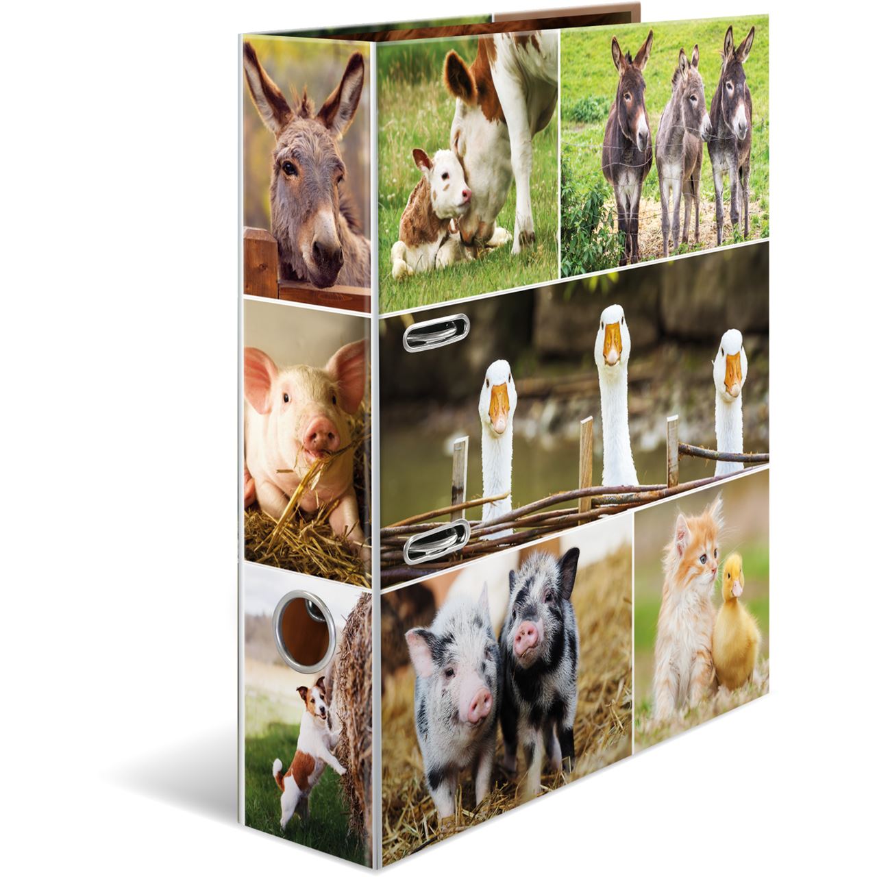 DIN A4 Motiv-Ordner mit wunderschönen Bauernhoftierfotografien. Ideal für alle Bauernhoffans, die ihre Zeit am liebsten im Stall oder auf der Weide inmitten von Kühen, Ziegen und Hühnern verbringen. Der Ordner ist hochwertig gefertigt aus stabilem Karton, mit Griffloch und Hebelmechanik (inkl. Niederhalter), innen bedruckt, zur optimalen Aufbewahrung gelochter Dokumente und Klarsichtfolien. Für optimale Ordnung zu Hause, in der Schule, Uni oder im Büro und dabei ein echter Hingucker.