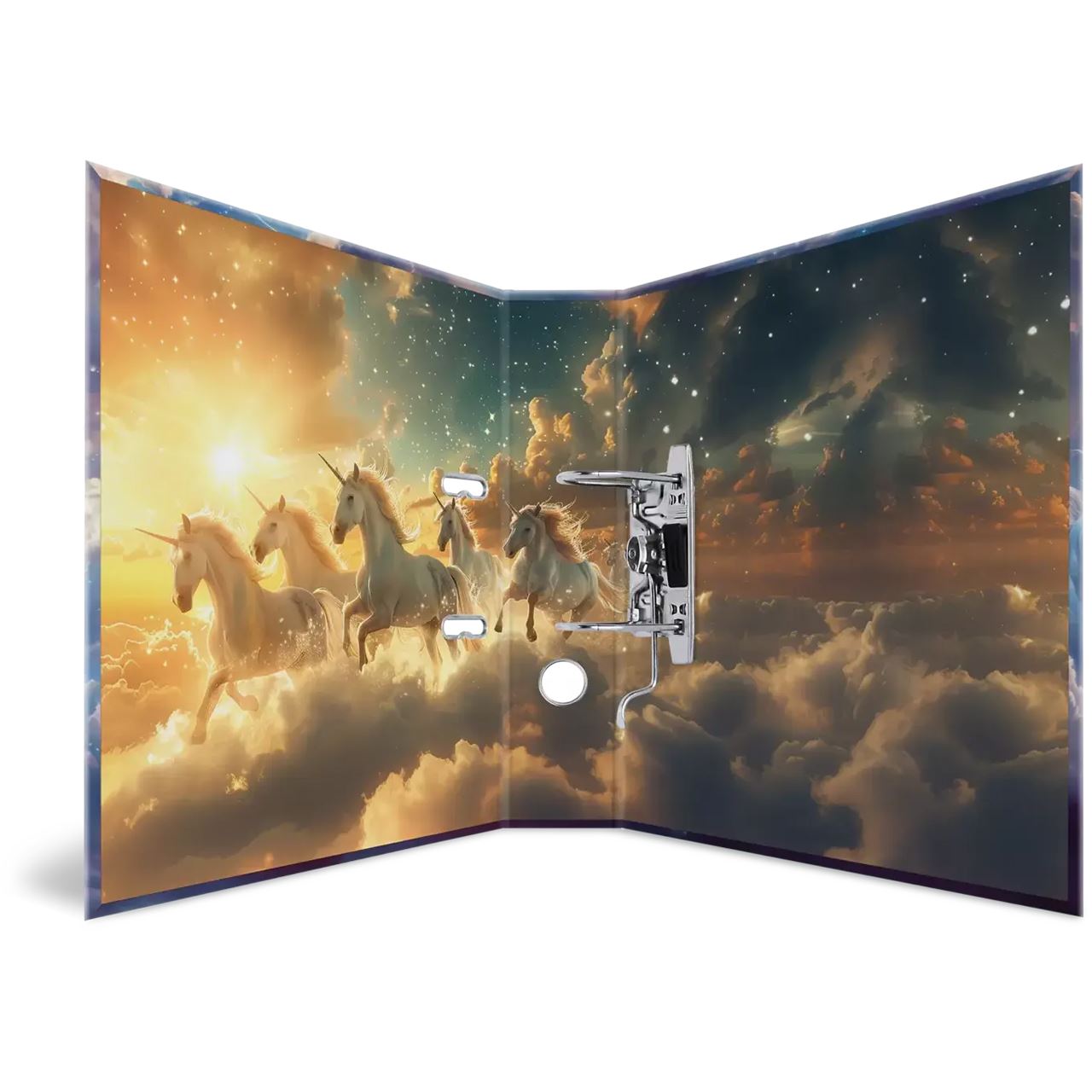Der Motiv-Ordner "Fantasy Unicorns" bringt eine Welt voller Fantasie und Magie in die Kinder- und Jugendzimmer. Anmutige Einhörner galoppieren durch einen zarten Himmel ind Rosé- und Lilatönen, während im Hintergrund ein imposantes Schloss die traumhafte Kulisse ergänzt. Jedes Detail des Ordners lädt zum Träumen ein und regt die Vorstellungskraft an. Der „Fantasy Unicorns“-Ordner ist nicht nur ein praktisches Aufbewahrungsmittel für wichtige Dokumente, sondern auch ein inspirierendes Element, das jedem Raum einen Hauch von Magie verleiht. Ideal für kreative Köpfe und Träumer.