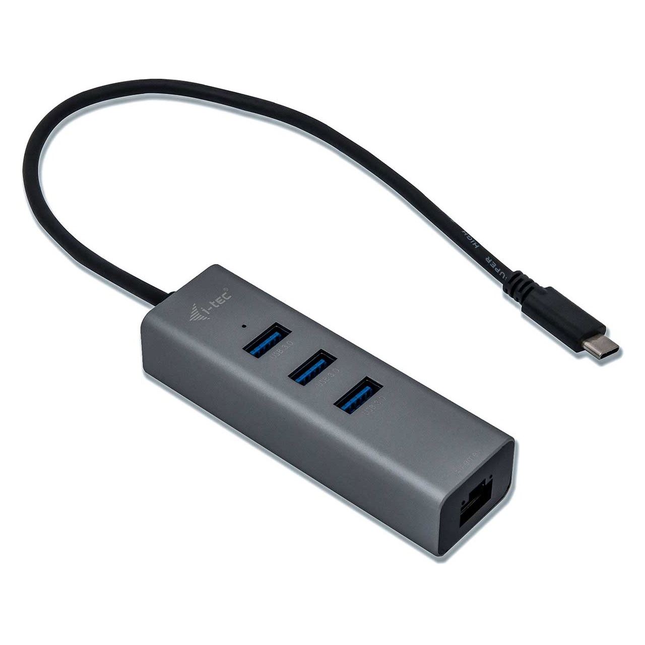 i-tec Metal USB-C HUB 3 Port + Gigabit Ethernet Adapter. Produktfarbe: Grau, LED-Anzeigen: LAN, Chipsatz: Realtek 0411, Realtek 8153. Breite: 96 mm, Tiefe: 30 mm, Höhe: 21 mm. Verpackungsbreite: 145 mm, Verpackungstiefe: 130 mm, Verpackungshöhe: 25 mm. Unterstützt Windows-Betriebssysteme: Windows 10 Education, Windows 10 Education x64, Windows 10 Enterprise, Windows 10 Enterprise x64,.... Energiequelle: USB