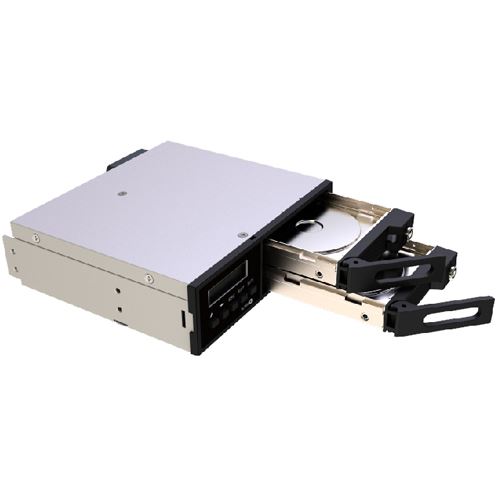 Raidon iR2022, internal RAID 0,1, 2x 2,5" SATA zu SATA, (SATA III 6Gbit/s) LCD Display, 5,25" Form factor, black. Größe (Imperial): 13,3 cm (5.25"), Typ: Speicherlaufwerkbehälter, Produktfarbe: Schwarz. Breite: 140 mm, Tiefe: 145 mm, Höhe: 42 mm. Paketgewicht: 1,08 kg. Menge pro Packung: 1 Stück(e), Mitgelieferte Kabel: SATA, Anzahl an beigefügten Steckschlössern: 2 Stück(e). Anzahl Produkte pro Versandkarton: 10 Stück(e), Ursprungsland: Taiwan