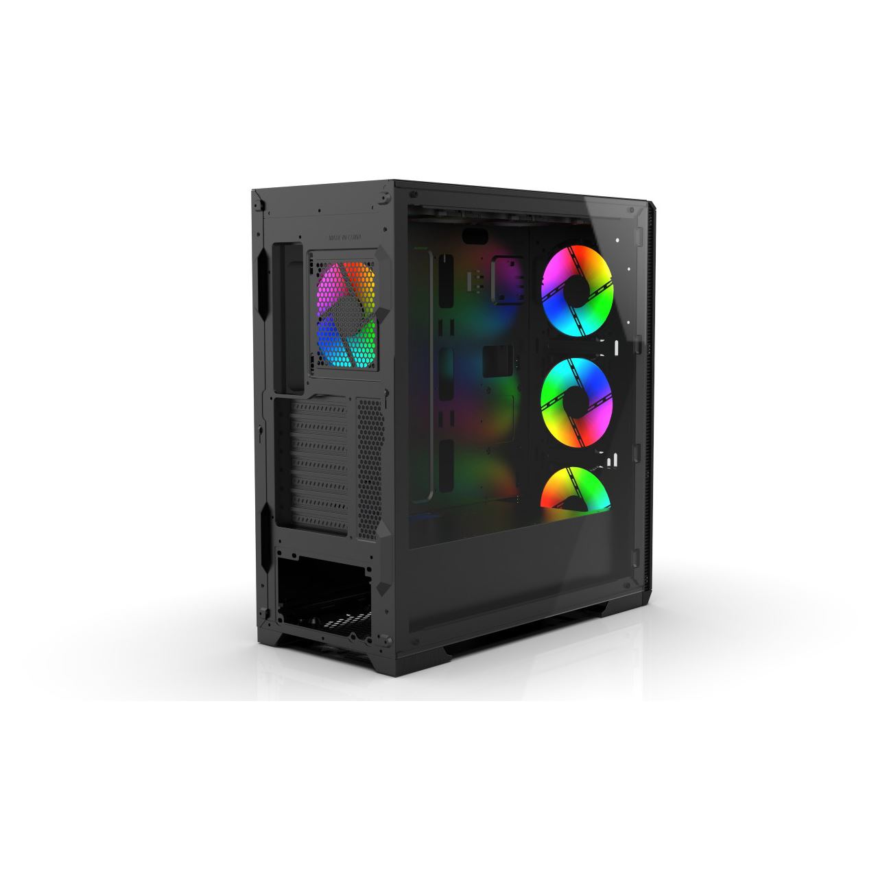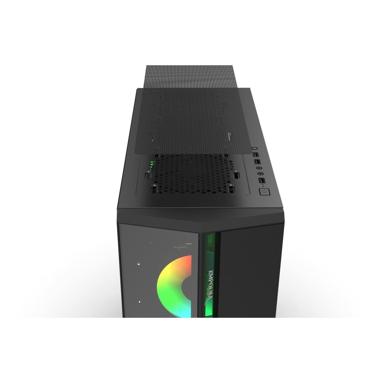 Der neue Inca Empousa ist mit einer Vollglas-Seitenwand ausgestattet, damit Sie Ihre Komponenten klar überwachen können. Mit der Klarheit, die Inca Empousa mit einer 4 mm dicken Seitenwand aus gehärtetem (verstärktem) Glas und 4x festen ARGB-LED-Lüftern bietet, werden Sie nie genug davon bekommen, Ihre Komponenten zu betrachten.