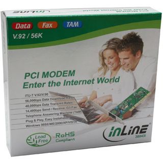 56K Fax Modem, InLine, PCImit Anschlusskabel und Treiber CDConexant Chipkonform mit dem V.92/V.90 Standard32-bit PCI Schnittstelle Rev. 2.3 kompatibelPlug and play kompatibel Für einen einfache Installation