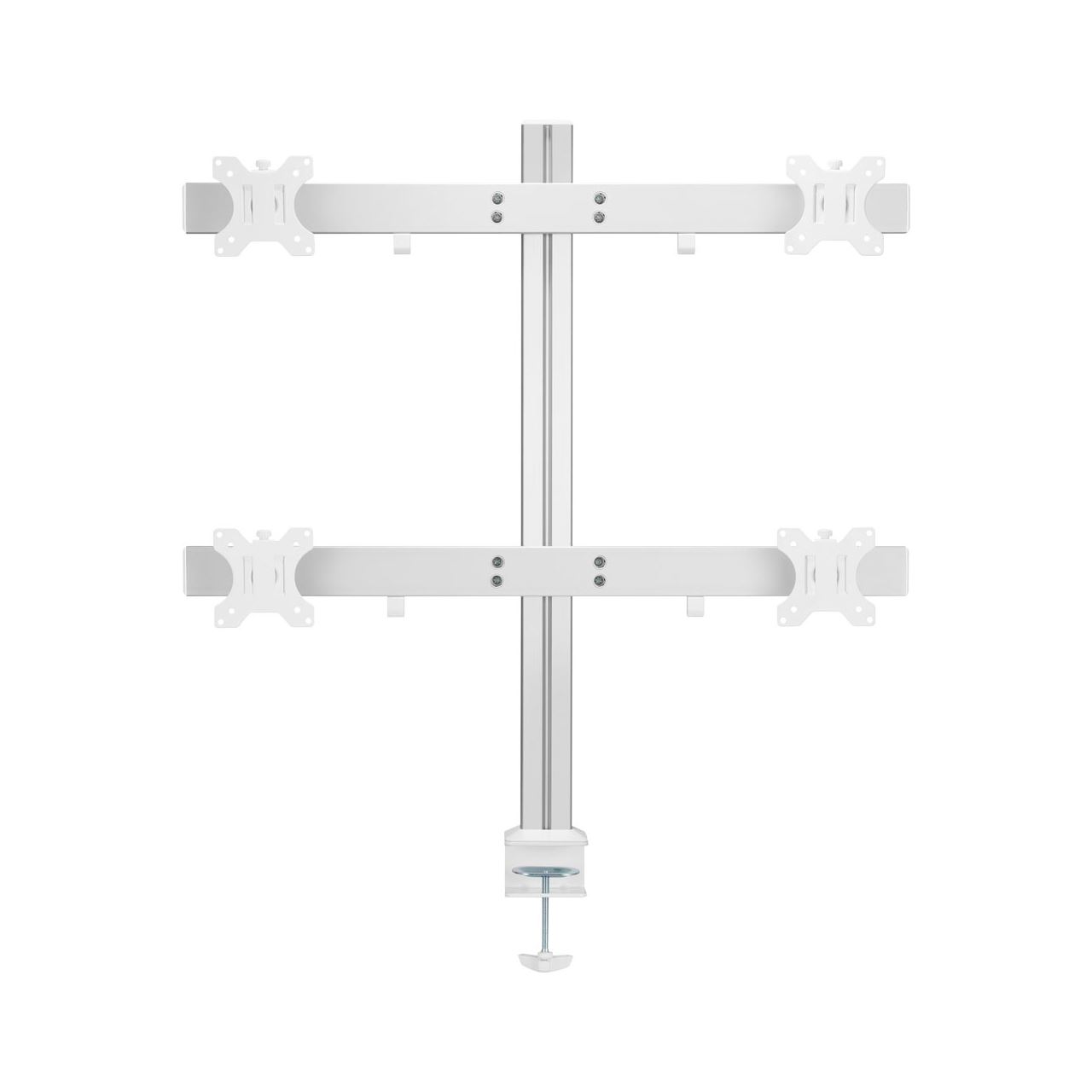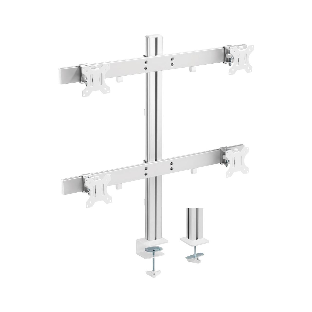 InLine Aluminium Monitor-Tischhalterung für 4 Monitore bis 32", 8kg. Höchstgewichtskapazität: 8 kg, Minimum Bildschirmgröße: 43,2 cm (17"), Maximale Bildschirmgröße: 43,2 cm (17"), Minimale VESA-Halterung: 75 x 75 mm, Maximale VESA-Halterung: 100 x 100 mm. Schwenkwinkelbereich: -17 - 17°, Neigungswinkelbereich: -34 - 34°. Produktfarbe: Weiß, Aluminium