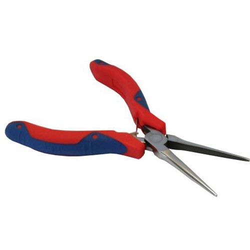 Spitzzange, glatte Backen, mit doppelten Blattfedern gummierte Griffe für sicheren Halt, 2-farbigfür Elektronik-Arbeiten und Hobby-Heimwerker bestens geeignetgehärteter Stahlpräzises Schneid- / Griff-Werkzeug zum sauberen Arbeiten