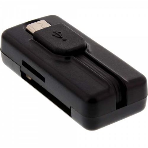 USB OTG ist eine Spezifikation die es USB-Geraten wie Tablets oder Smartphones erlaubt, als Host zu fungieren, so dass andere USB-Geräte wie USB-Sticks, Mäuse oder Tastaturen direkt mit ihnen verbunden werden können. Dazu bietet dieser Cardreader eine USB Buchse. Weiterhin sind 2 Speicherkarten-Laufwerke für SD und microSD Speicherkarten vorhanden.Im Taschenformat mit versteckbarem KabelUnterstützt die OTG-Funktion1x USB 2.0 Typ A BuchseAnschluss: Micro-USB SteckerUnterstützte Speicherkarten: SD, microSD, SDHC, microSDHC, MMC, SDXC, micro SDXC, bis zu 2 TB (geräteabhängig)Für Android Smartphones oder Tablets mit micro-USB OTG Anschluss & mind. Android 4.0USB OTG unterstützt FAT32, NTFS wird nicht unterstütztUnterstützt USB-Sticks, USB Mäuse / Tastaturen bzw. deren wireless USB-Empfänger sowie weitere USB-Geräte