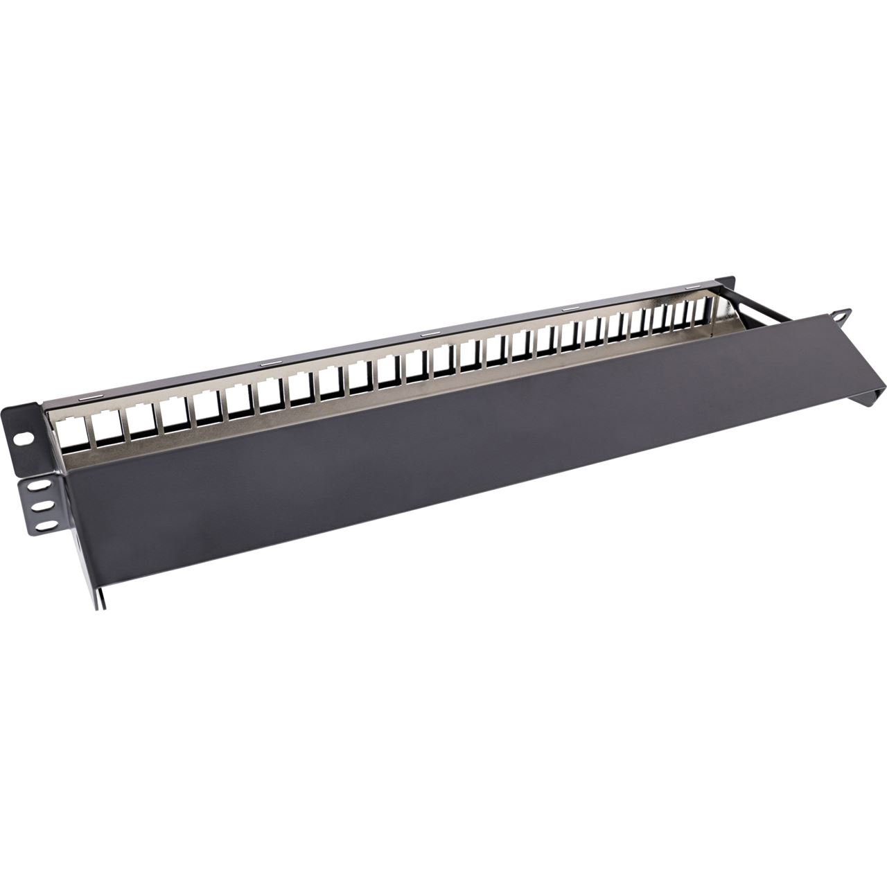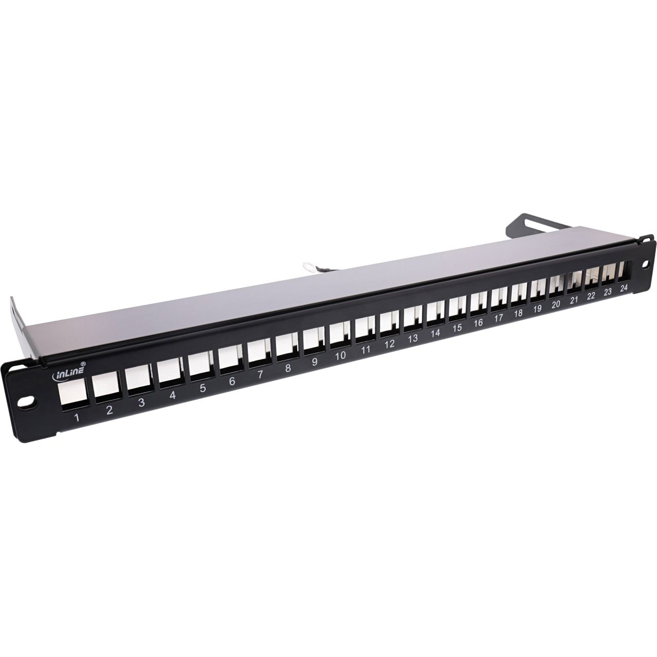InLine Patchfeld 24-fach, Keystone Snap-In Leerblech Patchpanel, 48,26cm (19"), 1HE, schwarz (76824K)