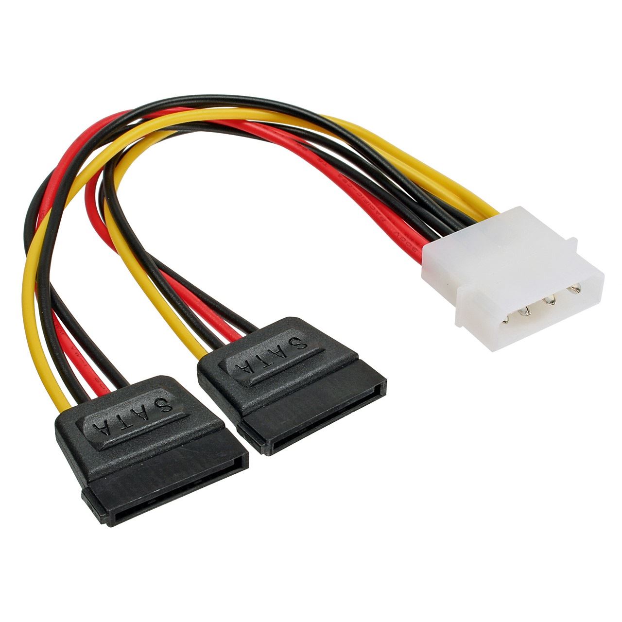 S-ATA Stromanschlusskabel, 2 Abgriffe, 4pol. Stromstecker an zwei 15pol. S-ATA Stromstecker