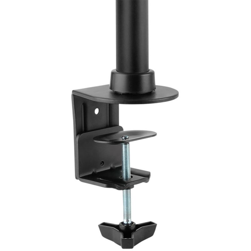 Tischhalterung für Flachbild-Monitore bis 69cm (ca. 27")Um +/-45° zu neigen, Display 360° drehbarMit Gelenk für eine flexible AusrichtungVESA 75x75, 100x100mmSchraubklemme zur Befestigung an der Tischplatte (bis ca. 8,8cm) oder durch die Tischplatte (bis ca. 8cm)Höhenverstellbar bis ca. 45cmMax. Belastbarkeit: 10kgInkl. Zubehör zur Befestigung eines BildschirmsLieferumfang:Tischhalterung mit SchraubklemmeSchraubenset mit M4 und M5 Schrauben3x Innensechskant-SchlüsselAufbauanleitung