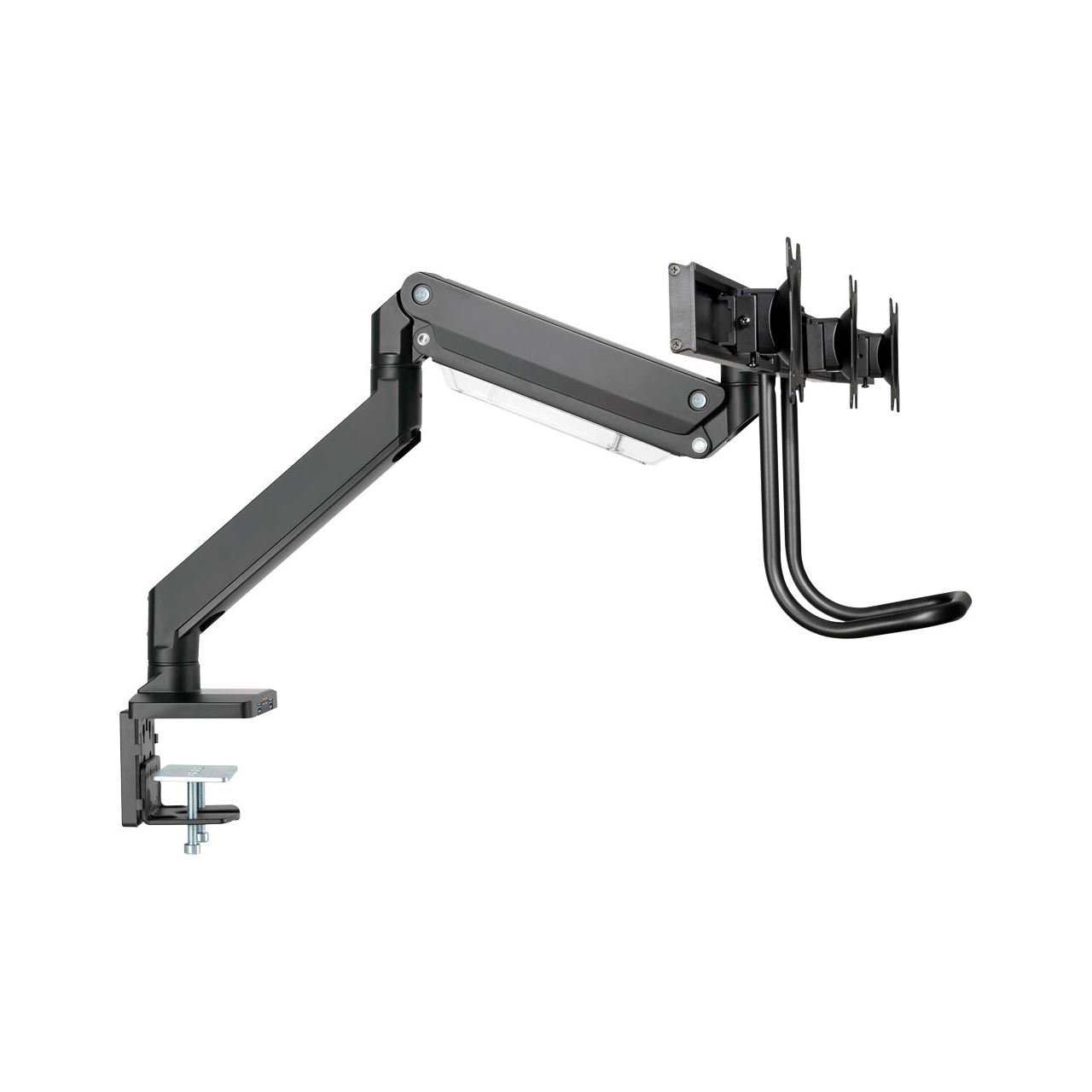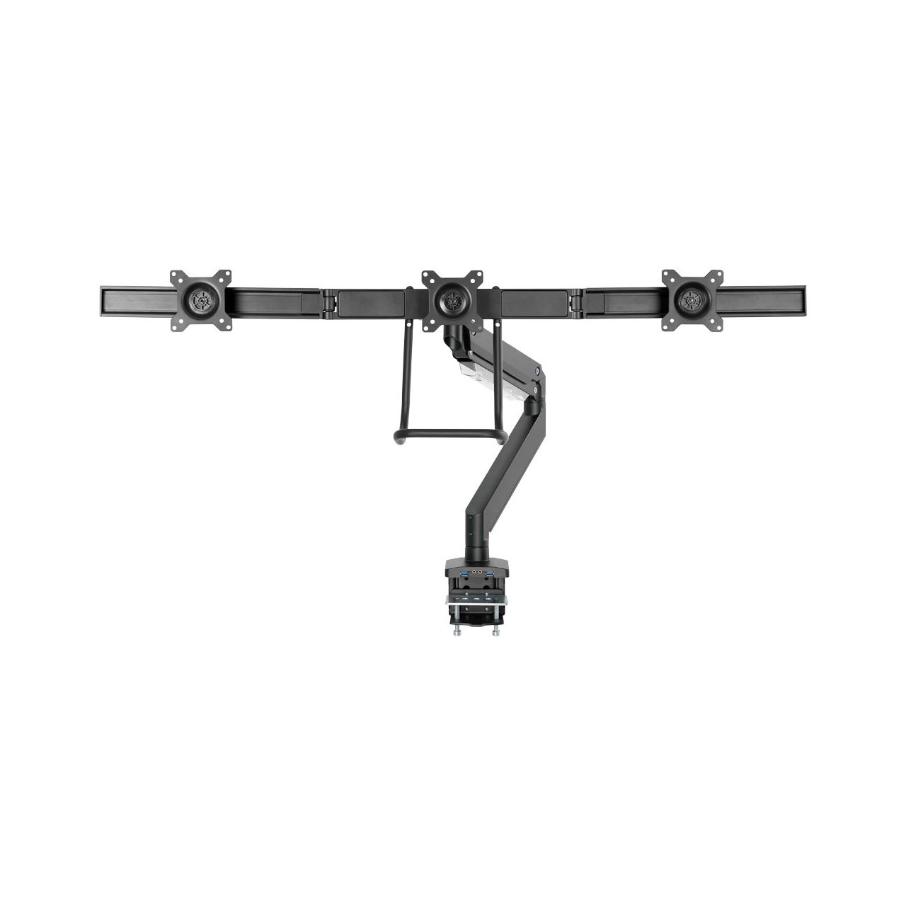 InLine Tischhalterung mit Lifter+USB, beweglich, für 3 Monitore bis 69cm (27"). Montage: Klemme, Höchstgewichtskapazität: 18 kg, Minimum Bildschirmgröße: 33 cm (13"), Maximale Bildschirmgröße: 43,2 cm (17"). Höhenverstellung, Schwenkwinkelbereich: -10 - 10°, Neigungswinkelbereich: -15 - 5°. Produktfarbe: Schwarz