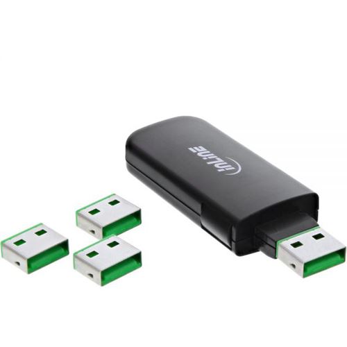 Mit dem InLine® USB Portblocker können Sie schnell, einfach und sicher bis zu 4 USB A Buchsen Ihres PC blockieren. Der Stick hilft ihnen dabei, die einzelnen Blocker in die USB Buchsen zu schieben und auch wieder heraus zu holen. Die Portblocker bieten eine mechanische Blockade, das Einstecken von weiteren USB Geräten wird unterbunden.USB Portblocker mit 4 BlockerPraktische Bauform wie ein USB StickAufbewahrung aller USB Blocker im StickLieferumfang: 4x USB Blocker, 1x Werkzeug zum Setzen und Entfernen