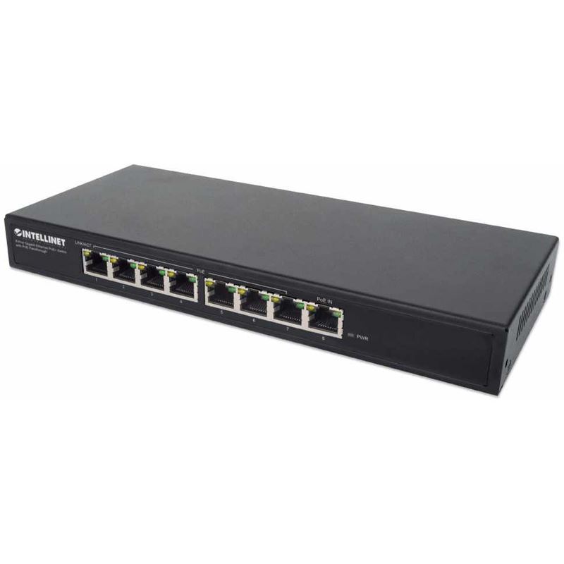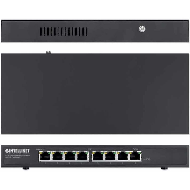 Intellinet 561679. Basic Switching RJ-45 Ethernet Ports-Typ: Gigabit Ethernet (10/100/1000), Anzahl der basisschaltenden RJ-45 Ethernet Ports: 8. MAC-Adressentabelle: 2000 Eintragungen, Routing-/Switching-Kapazität: 16 Gbit/s. Netzstandard: IEEE 802.3ab, IEEE 802.3af, IEEE 802.3at, IEEE 802.3az, IEEE 802.3bt, IEEE 802.3i, IEEE 802.3u,.... DC input Spannung: 48 - 57 V. Power over Ethernet (PoE)