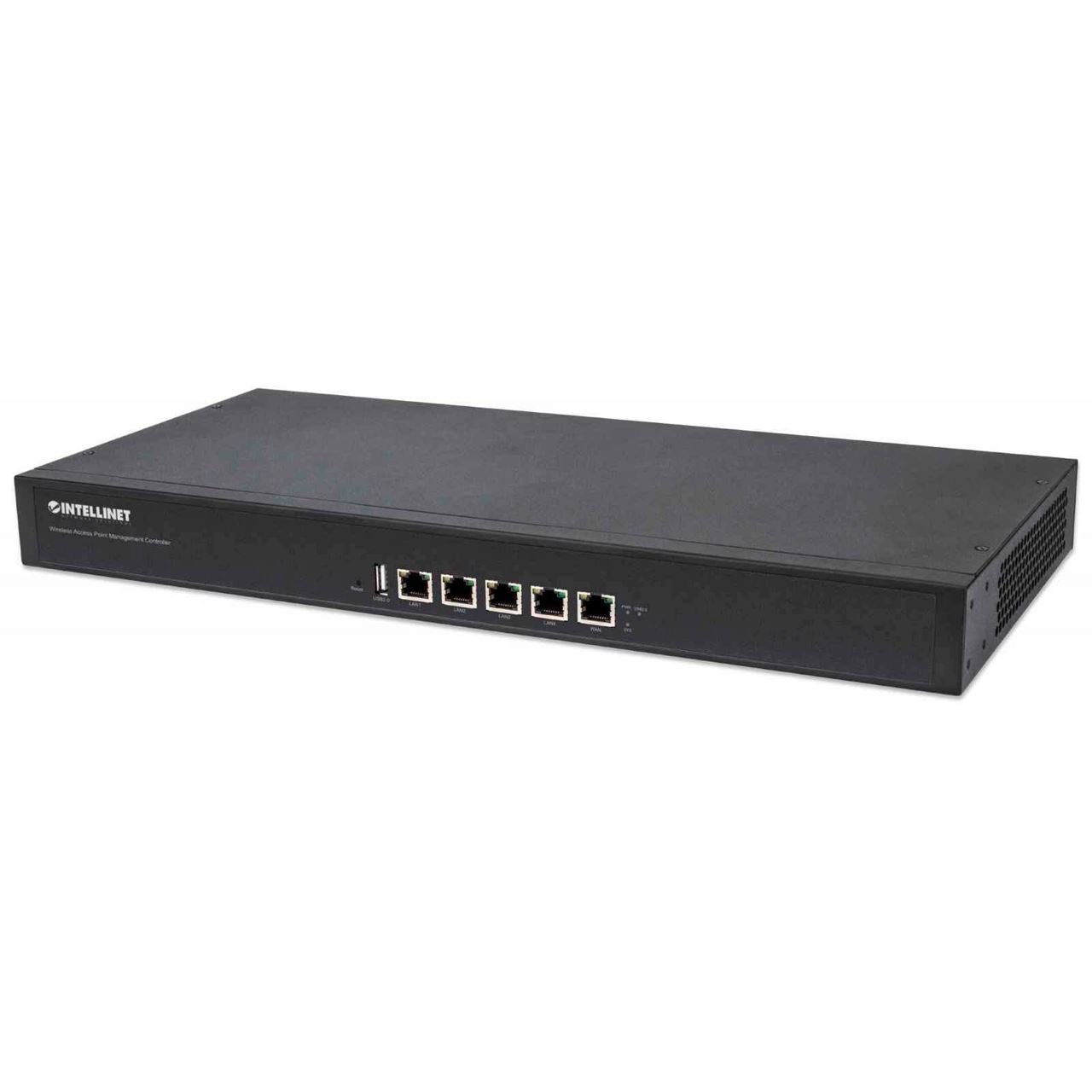 Intellinet WLAN-Access Point Management Controller, Management von bis zu 200 Access Points, integrierte Routerfunktion mit einem WAN-Port, 19" Rackmount. Produktfarbe: Schwarz, Befestigungstyp: Rackeinbau, LED-Anzeigen: Leistung. Prozessortaktfrequenz: 880 MHz, Speicherkapazität: 256 MB, Interner Speichertyp: DDR3. Ethernet LAN Datentransferraten: 10,100,1000 Mbit/s, Netzstandard: IEEE 802.3ab, IEEE 802.3i, IEEE 802.3u. Unterstützte Sicherheitsalgorithmen: SSH. WAN Port: Ethernet (RJ-45)