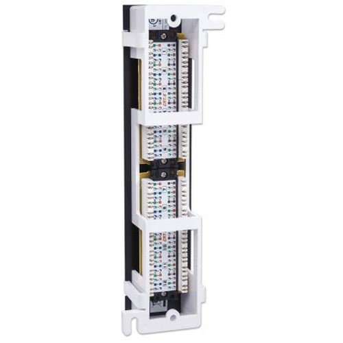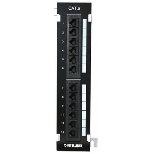 Intellinet 12-Port Cat6 Patchpanel zur Wandmontage, UTP. Netzstandard: IEEE 802.3, IEEE 802.3ab, IEEE 802.3u, Ethernet Schnittstellen Typ: Schnelles Ethernet, Gigabit Ethernet, Stecker: RJ-45. Produktfarbe: Schwarz, Montage: Rackeinbau. Konformitätsbescheinigungen: RoHS, Zertifizierung: UL E157358. Breite: 82 mm, Höhe: 47 mm, Tiefe: 254 mm