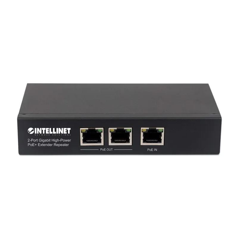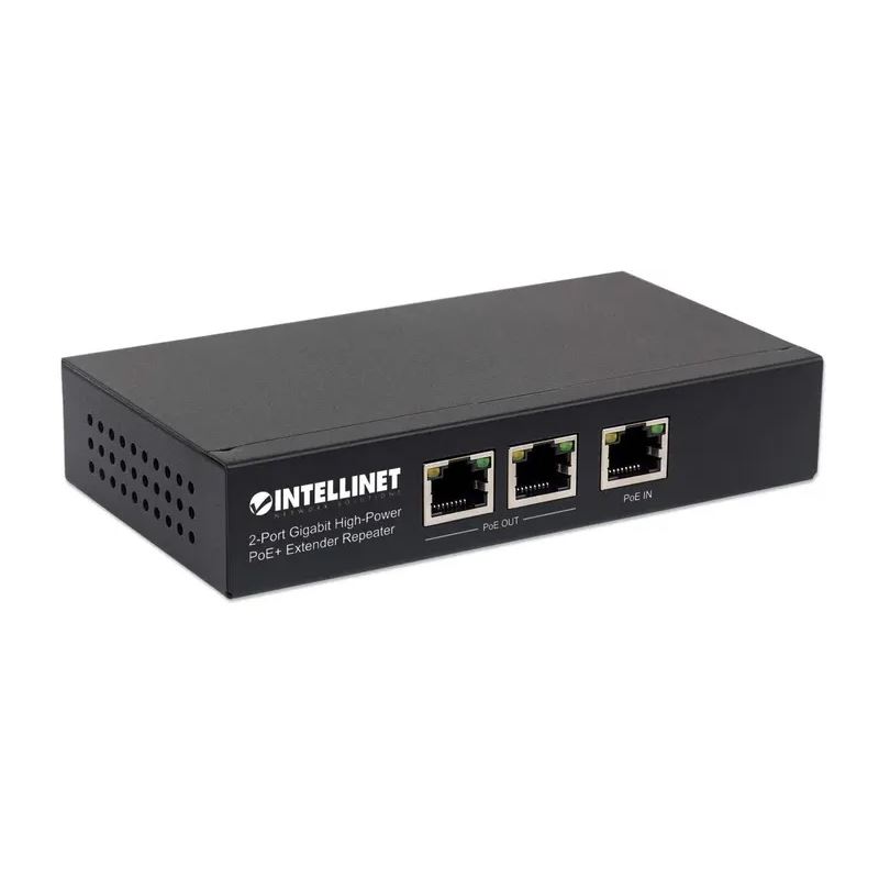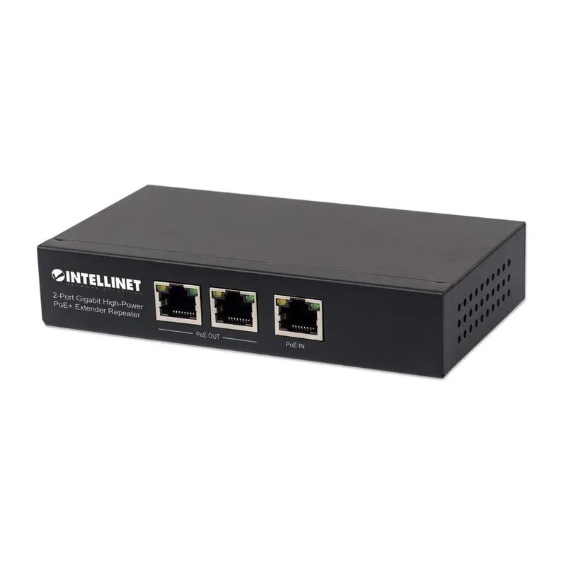 Intellinet 2-Port Gigabit High-Power PoE+ Extender, IEEE 802.3at/af PoE+/PoE, verlängert die Reichweite einer PoE-Verbindung um zusätzliche 100 Meter, 2 PSE-Ports, Metall. Switch-Typ: Unmanaged. Basic Switching RJ-45 Ethernet Ports-Typ: Gigabit Ethernet (10/100/1000), Anzahl der basisschaltenden RJ-45 Ethernet Ports: 3. MAC-Adressentabelle: 2048 Eintragungen, Routing-/Switching-Kapazität: 6 Gbit/s. Netzstandard: IEEE 802.3, IEEE 802.3ab, IEEE 802.3af, IEEE 802.3at, IEEE 802.3u. Power over Ethernet (PoE)
