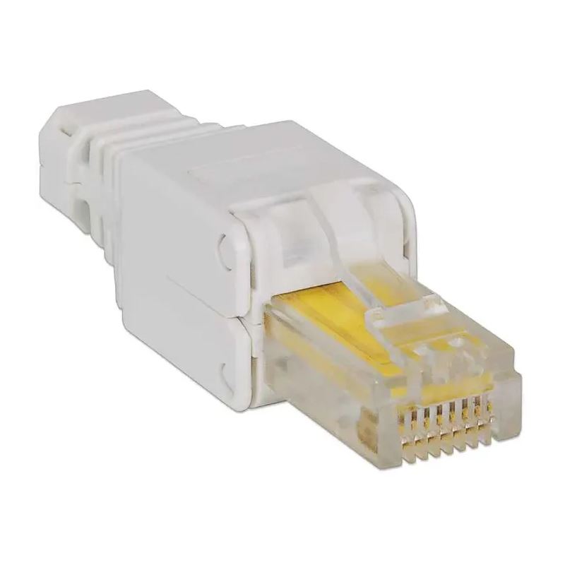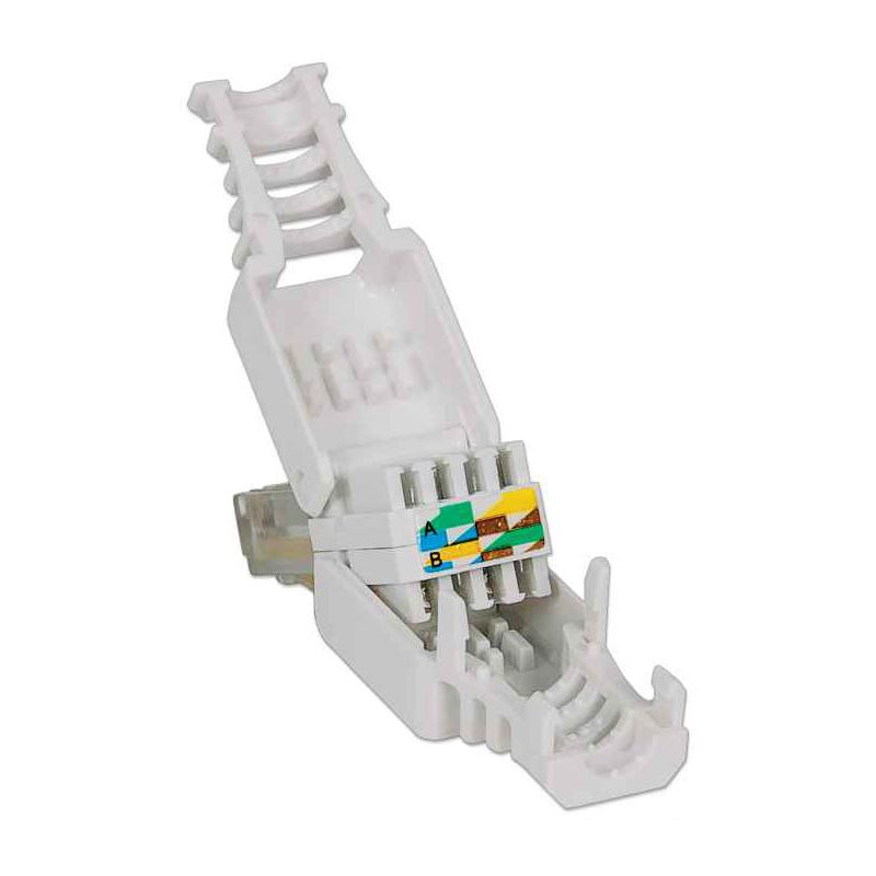 Intellinet Werkzeugloser RJ45-Stecker, RJ45-Modularstecker, kein Crimpwerkzeug benötigt. Stecker: RJ45, Produktfarbe: Weiß, Steckerverbindergeschlecht: Männlich. Gewicht: 14 g, Breite: 14,5 mm, Tiefe: 53,4 mm