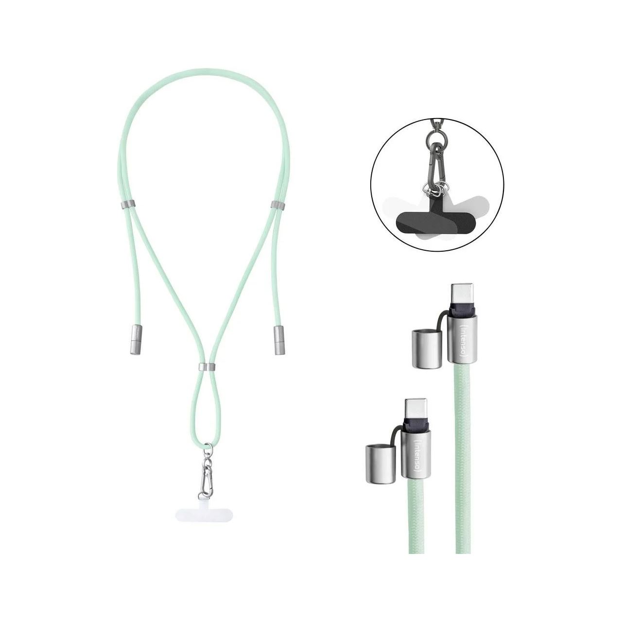 Intenso Handykette mit USB-C Lade- und Datenkabel – 60W Schnellladen, größenverstellbar, 1,65 m, Nylon, USB-C zu USB-C, grün. Kabellänge: 1,65 m. Anschluss 1: USB C, Anschluss 2: USB C, Produktfarbe: Grün