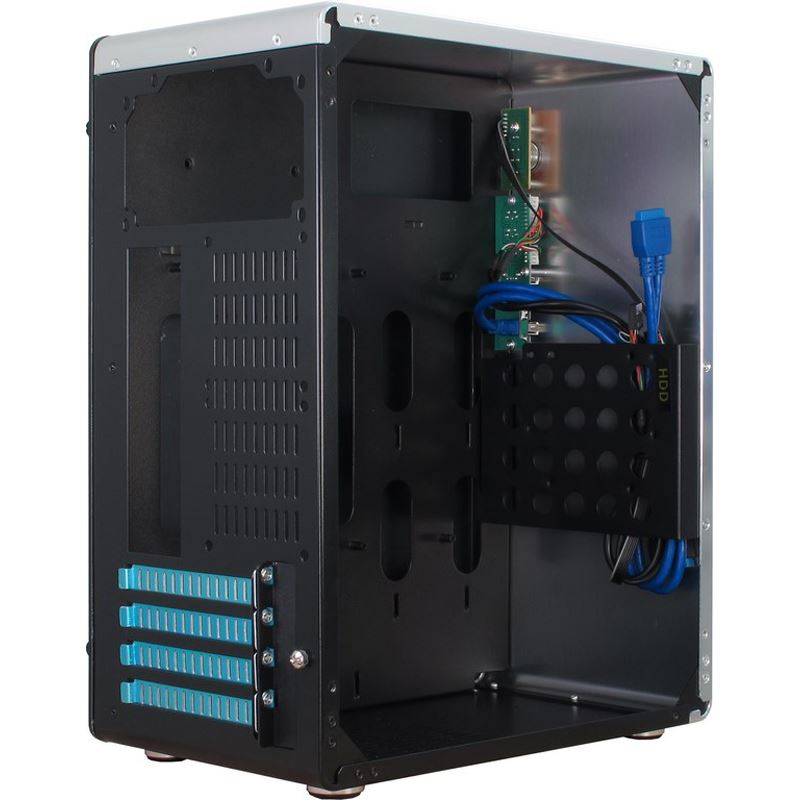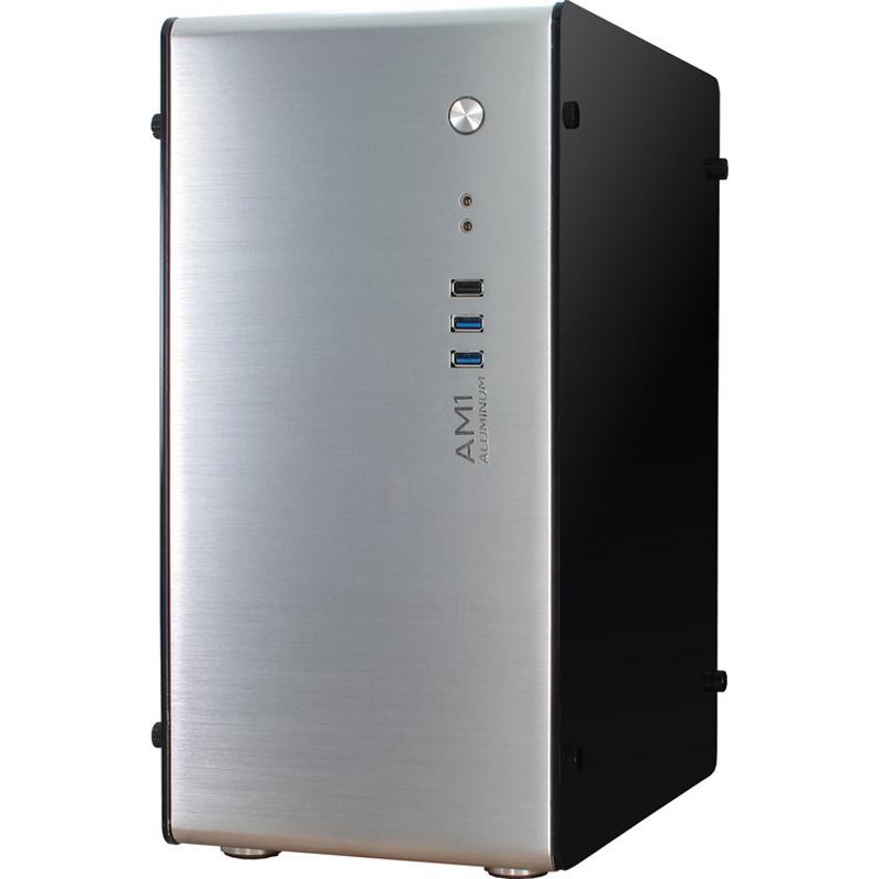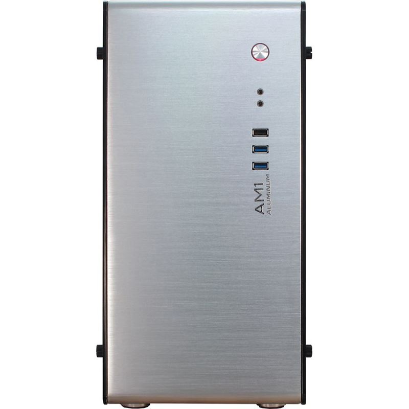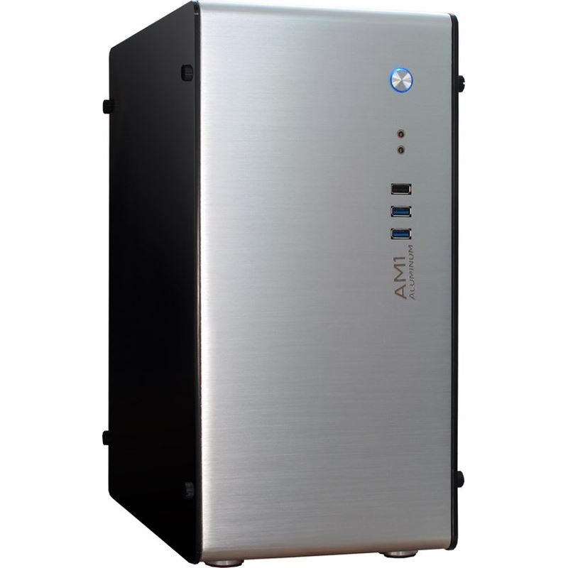 Das Kompaktmodell aus der attraktiven Aluminiumserie für Home-PC-Systeme. Das Gehäuse gefällt durch sein zeitloses Design und seine eleganten abgerundeten Ecken. Transluzente Seitenteile aus schwarz getöntem Acrylglas setzen beispielsweise beleuchtete Lüfter dezent in Szene. Der Power-Button ist blau beleuchtet und bündig in die Front eingelassen. Zwei USB 3.0 und ein USB 2.0 sowie die obligatorischen HD-Audio-Anschlüsse befinden sich rechts auf der Frontblende und sind gut erreichbar. Das Mainboard ist im Handumdrehen montiert. Mittels Rändelschrauben können die beiden Seitenteile mit wenig Aufwand demontiert werden. ATX-Netzteile lassen sich zur Stromversorgung montieren. Festplatten werden direkt am Gehäuseboden oder in speziellen Rahmen an der Front installiert. Für den Einbau von Lüftern stehen diverse Einbauplätze zur Verfügung.