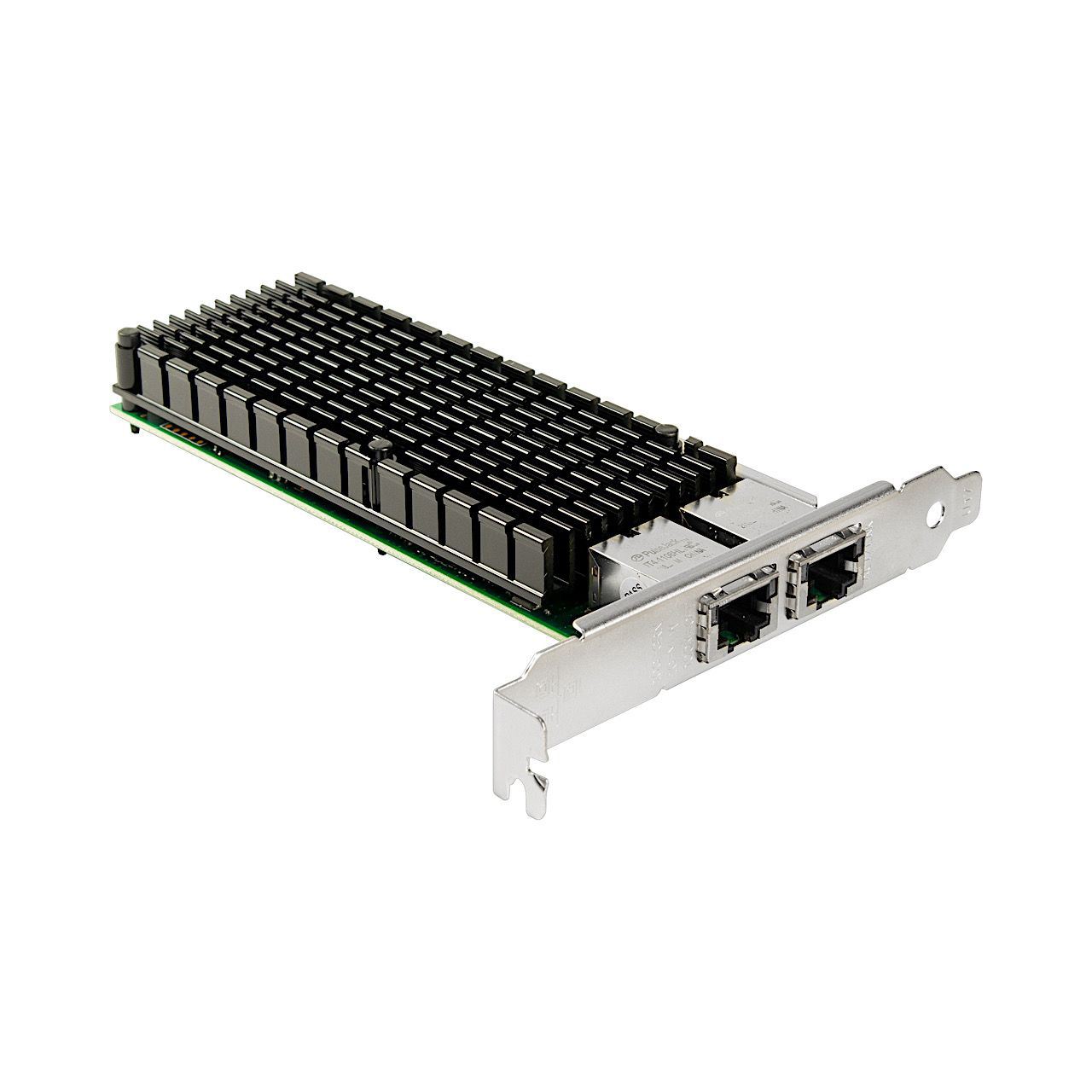 Der verbaute Intel® Chipsatz X540 bietet hervorragende Leistung und sorgt für schnellen Datendurchsatz. Zudem wird durch die ST-7214 der Hauptprozessor weiter entlastet, sodass der Netzwerktransfer nicht mehr so stark den Hauptprozessor beansprucht, was oft beim Einsatz von normalen Netzwerkkarten in einem Serverumfeld der Fall ist. Der Anschluss erfolgt durch bis zu zwei RJ45-Ports mit einer Geschwindigkeit von bis zu 10G.