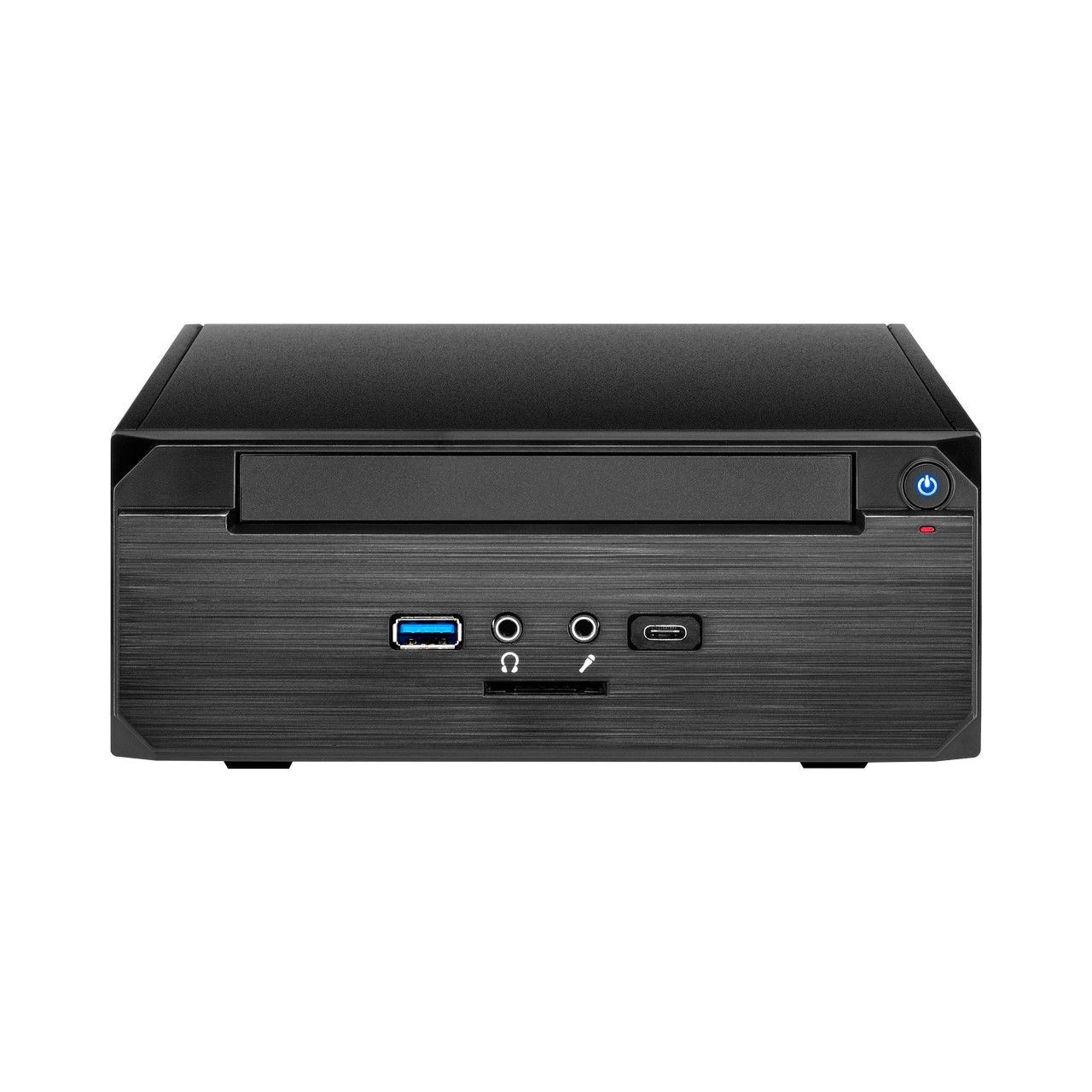 Zusammen mit den mittig platzierten Anschlüssen für USB 3.0 Type A und USB 3.0 Type C, dem Card Reader für SDXC sowie den Anschlüssen für Audio zeigt sich das MW-02 II praktisch und modern. Ein Schacht für Slim-DVD Laufwerke komplettiert den Ausstattungsumfang. Die perforierten Seitenwände ermöglichen eine gute thermische Entlastung, ein einfach zu entnehmender Innenkäfig die einfache Montage aller Komponenten.