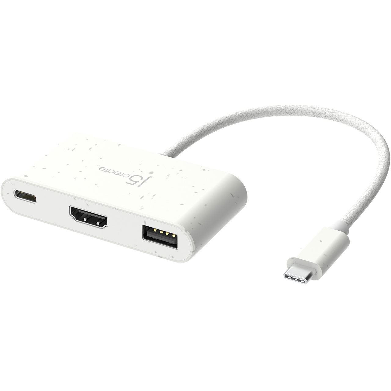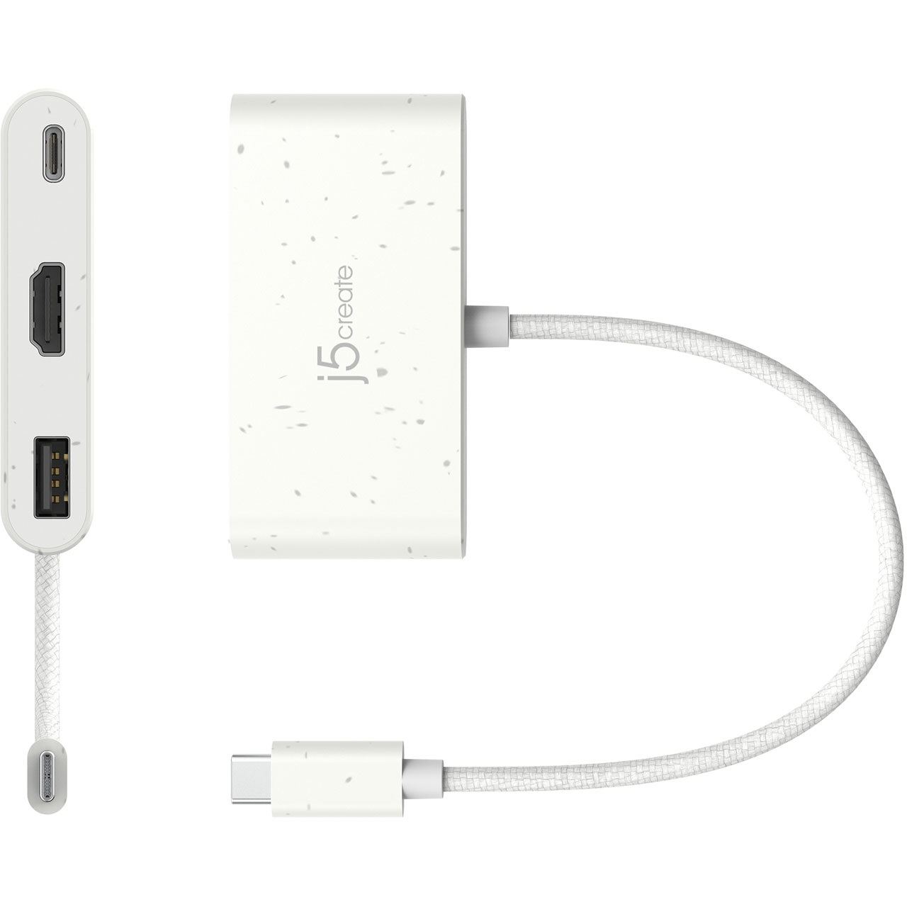 j5create JCA379EW-N Umweltfreundlicher USB-C®-zu-HDMI™- & USB™-Anschluss Typ A mit Power Delivery. Hostschnittstelle: USB Typ-C, Hub-Schnittstellen: HDMI, USB 3.2 Gen 1 (3.1 Gen 1) Type-A, USB Typ-C. Datenübertragungsrate: 5000 Mbit/s, Produktfarbe: Weiß, USB-Stromversorgung bis zu: 100 W. Eingangsspannung: 20 V, Eingangsstrom: 5 A, Ausgangsspannung: 20 V. Unterstützung anderer Betriebsysteme: Android, ChromeOS, iOS, Mindestsystemvoraussetzungen: • Available DisplayPort™ Alt Mode over USB-C® port for video output • Available USB™.... Breite: 37,8 mm, Tiefe: 15,2 mm, Höhe: 75,4 mm