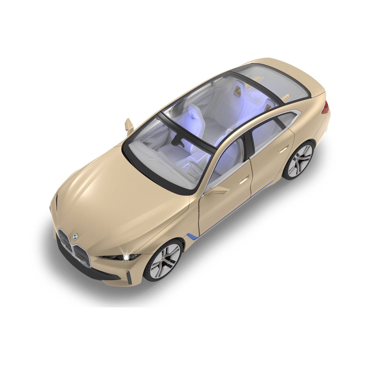 Wie bei einem echten Fahrzeug in der Spezialausstattung gibt es bei diesem Modell ein Start-Stop LED Fahrlicht. Sobald das Modell losfährt leuchten die Scheinwerfer hell auf. Wenn das Auto stoppt gehen die LED Fahrlichter wieder aus. Diese Funktion spart Energie und erhöht die Fahrzeit des Modelles.