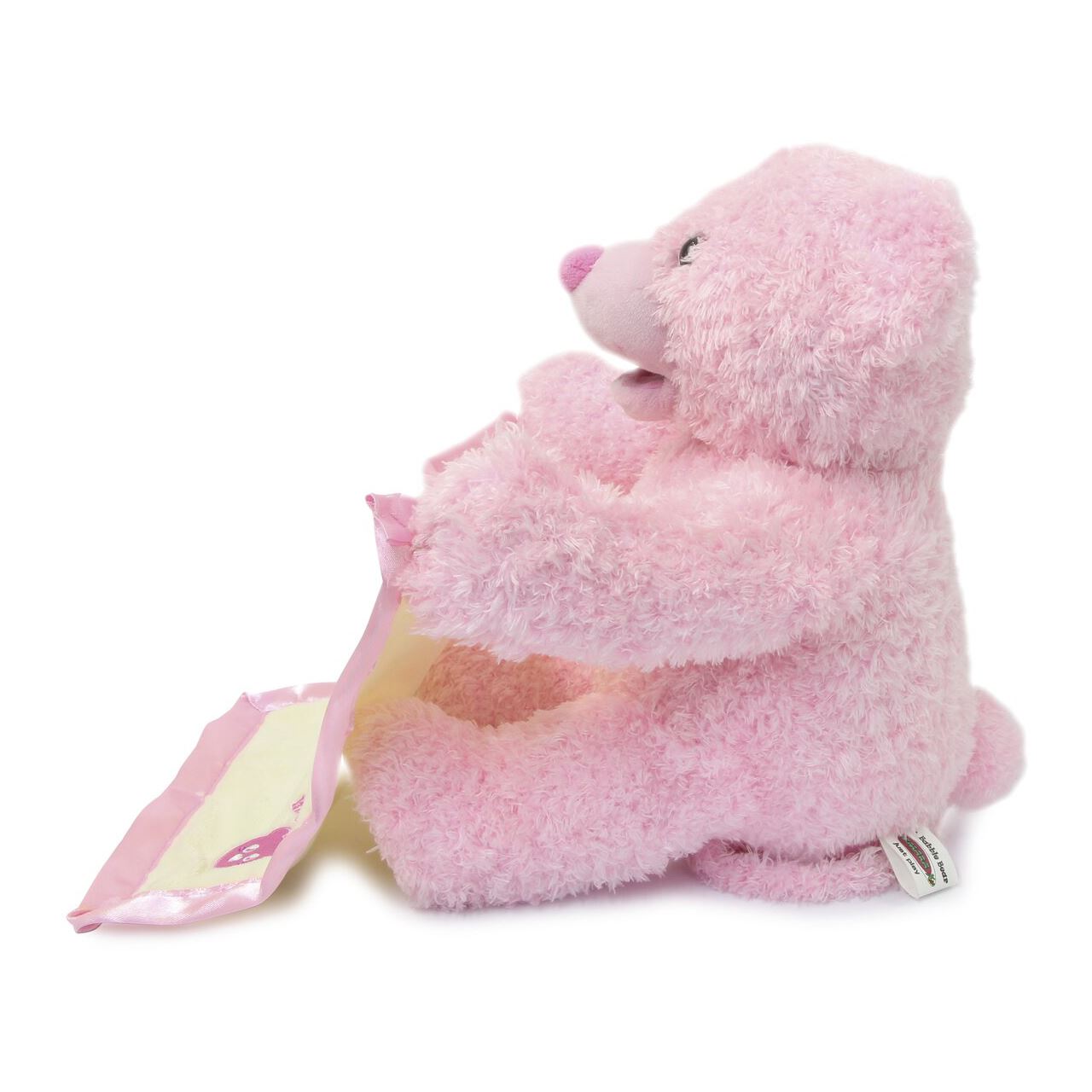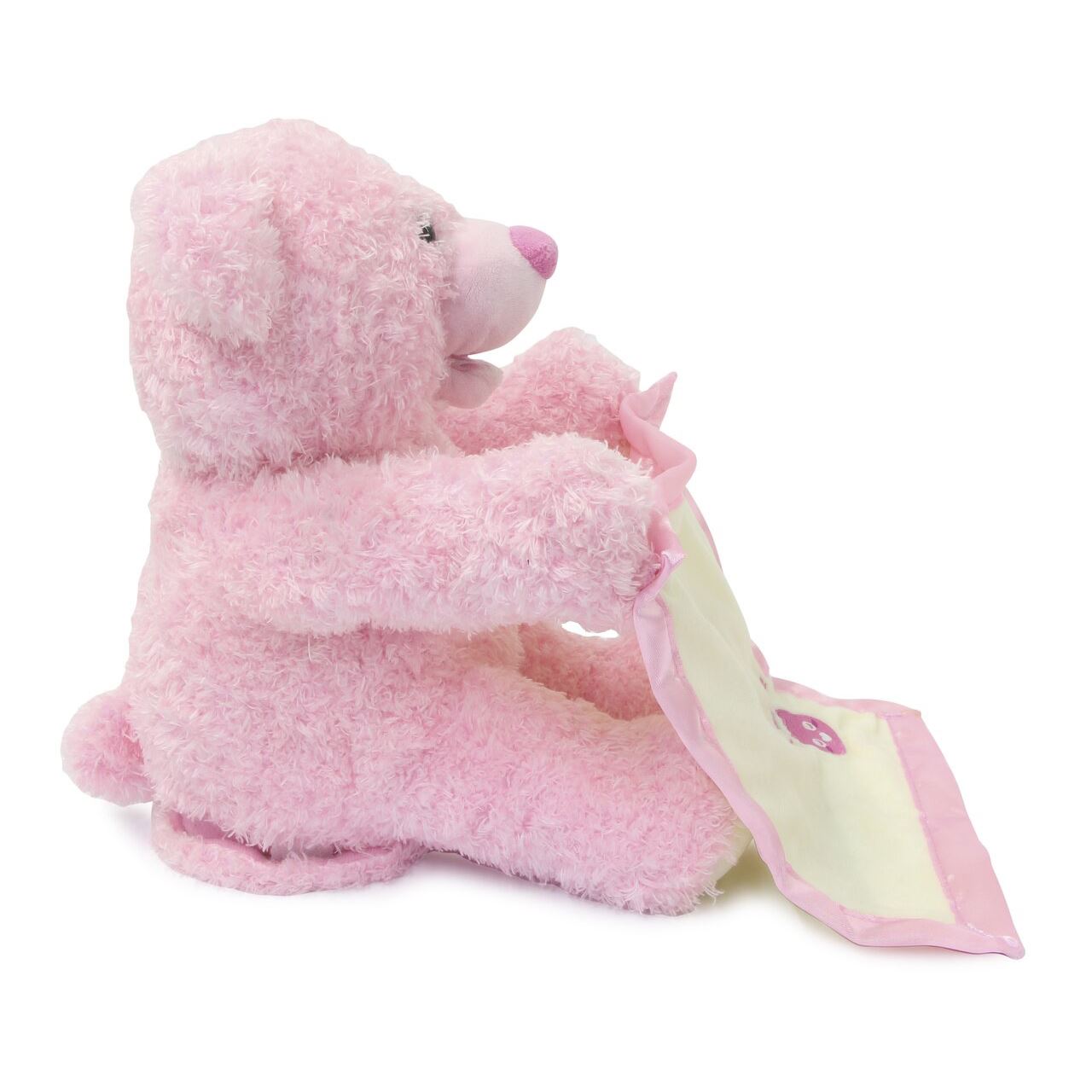 Mit Mrs. Babble Bär kommt eine flauschige Spielgefährtin zu den Kleinsten in die Kinderzimmer. Der süße Bär mit seinem weichen rosa Fell spielt mit seiner Kuscheldecke ein lustiges Versteckspiel in dem er sie mit seinen Armen hoch und runter bewegt. Der plüschige Stoffbär spricht und interagiert mit seinem liebvollen Gesicht zu den Kindern, macht niedliche Geräusche und bewegt dabei seinen Mund. Diese samtweiche Freundin wird ihnen dabei sofort ans Herz wachsen. Mrs. Babble Bär kann überall mitgenommen werden. Ob im Auto, Kindergarten oder zum Familienfest. Eine Spielkameradin die immer dabei ist und auch mit mehreren Kindern für großen Spielspaß sorgt.