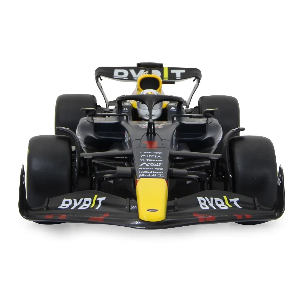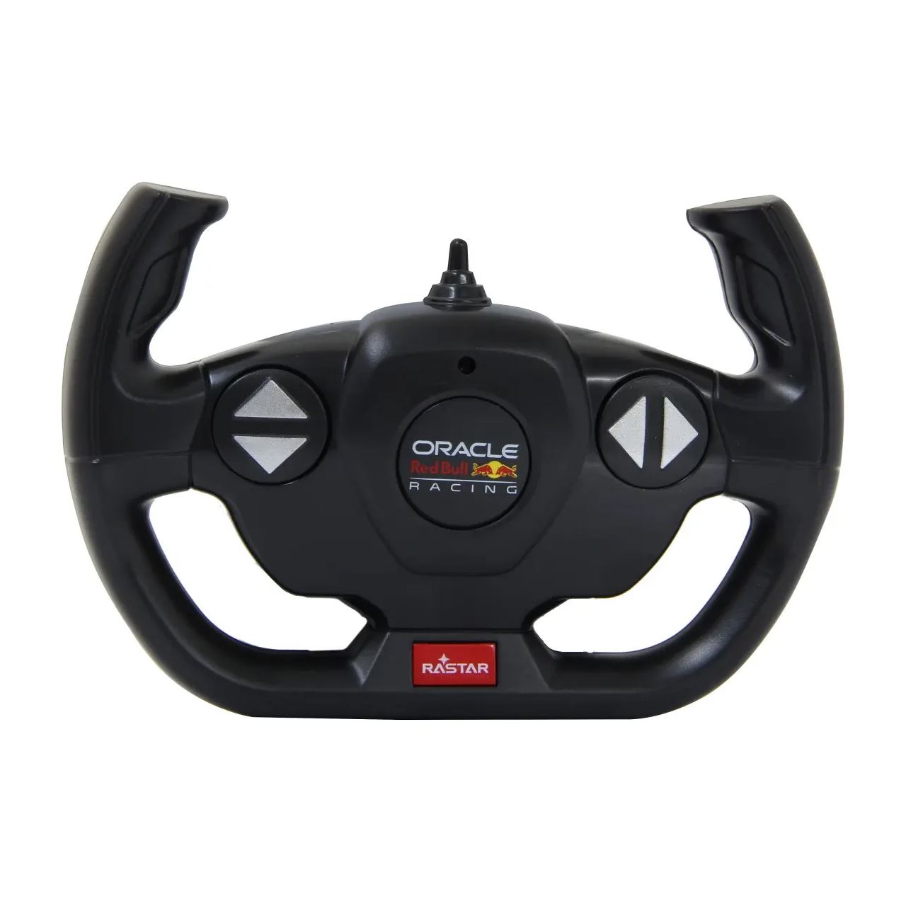 Der Oracle Red Bull Racing RB18 ist ein von Red Bull Racing entworfenes und gebautes Formel-1-Auto, das an der Formel-1-Weltmeisterschaft 2022 teilgenommen hat. Der RB18 wurde von Max Verstappen und Sergio Pérez gefahren. Im Jahr 2022 sicherte sich Max Verstappen erneut die Fahrerweltmeisterschaft mit 15 Siegen, was ein Rekord ist. Sergio Perez wurde Dritter, was sein bestes Ergebnis war. Red Bull Racing wurde mit dem Rennwagen zum fünften Mal Konstrukteursweltmeister. Der RB18 ist überwiegend in dunkelblau lackiert. Front- und Heckflügel sind komplett in Schwarz (Carbondesign) gehalten, auf der Motorenabdeckung und der Fahrzeugnase finden sich weitere Akzente im typischen gelb/roten Red Bull Design. Der Traum so einen Wagen selber zu fahren kann jetzt wahr werden. Mit diesem offiziell lizensierten Deluxe Car Modell 1:12 von JAMARA können Sie sich das Gefühl so ein Rennwagen zu besitzen ins heimische Wohnzimmer holen. Mit perfekt nachgebildeten originalen Details an Chassis und Karosserie und einem umfangreichen Decorbogen, der mit viel Liebe umgesetzt wurde, überzeugt das Fahrzeug zusätzlich durch die hochwertige Verarbeitung. Mit der ergonomischen 2,4 GHz Fernsteuerung halten Sie, wie in einem echten Rennauto, die Schaltzentrale in der Hand und erreichen Geschwindigkeiten bis zu 11 Km/h. Leicht zu erlernende Kommandos lassen das Modell mit seinen 46cm Länge, genau das tun was Sie vorgeben. Also, ab zur Rennrunde auf dem Parkett im Kinderzimmer und dem Spielspaß steht nichts mehr im Wege.