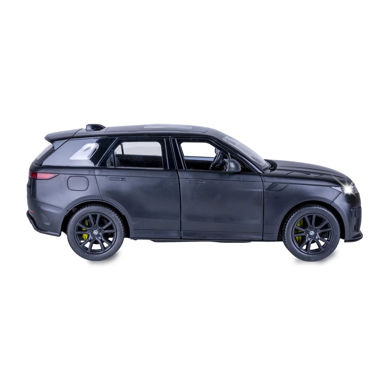 Der Range Rover Sport SV ist das leistungsstärkste und schnellste Modell, das Land Rover je gebaut hat. Angetrieben von einem 4,4-Liter-V8-Twin-Turbo-Mildhybrid mit 635 PS und 750 Nm Drehmoment, beschleunigt er in nur 3,8 Sekunden von 0 auf 100 km/h und erreicht eine Höchstgeschwindigkeit von 290 km/h. Der Traum, so einen Wagen selbst zu fahren, kann jetzt wahr werden. Mit diesem offiziell lizenzierten Deluxe Car Modell im Maßstab 1:14 von JAMARA können Sie sich das Gefühl, so einen Rennwagen zu besitzen, ins heimische Wohnzimmer holen. Mit LED-Licht vorn, einem detailgetreuen Innenraum und perfekt nachgebildeten originalen Details an Chassis und Karosserie, die mit viel Liebe umgesetzt wurden, überzeugt das Fahrzeug auch durch die hochwertige Verarbeitung. Die moderne 2,4GHz-Technologie ermöglicht einen reibungslosen Mehrspielerbetrieb ohne Frequenzüberschneidungen. Die transparente Windschutzscheibe gibt den Blick auf das realistische Cockpit frei, während die originalgetreue Lackierung für authentisches Design sorgt. Ausgestattet mit profilierten Gummireifen, gefederter Aufhängung vorn und hinten sowie einem Differentialgetriebe für ein besonders stabiles Fahrverhalten, lässt sich das Modell mit der Fernsteuerung präzise in alle Richtungen steuern. Türen lassen sich manuell öffnen und schließen, die Lenkung kann feinjustiert werden und die LED-Leuchten vorne und hinten schalten sich automatisch passend zur Fahrtrichtung ein. Das Modell eignet sich ideal für Kinder ab sechs Jahren und bringt echtes Fahrvergnügen im Kleinformat. Also, ab zur Stadtrunde auf dem Parkett im Kinderzimmer – und dem Spielspaß steht nichts mehr im Wege.