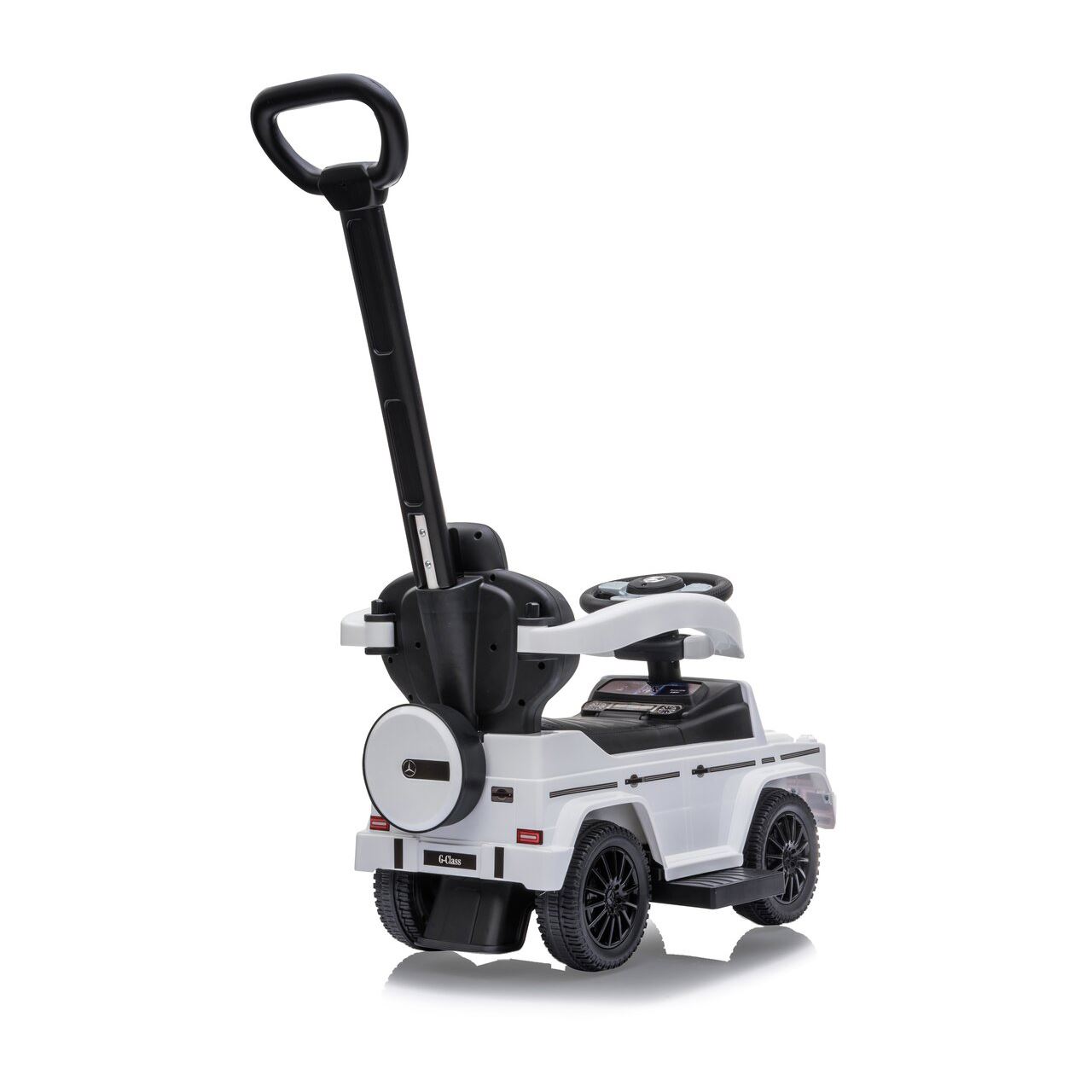 Jamara Mercedes-Benz G350D. Antriebstyp: Drücken, Empfohlenes Alter in Jahren (mind.): 0,5 Jahr(e), Zahl der Benutzer: 1 Benutzer, Anzahl der Räder: 4 Rad/Räder, Lichteffekte, Produktfarbe: Schwarz, Weiß. Batterien erforderlich, Akku-/Batterietyp: AA