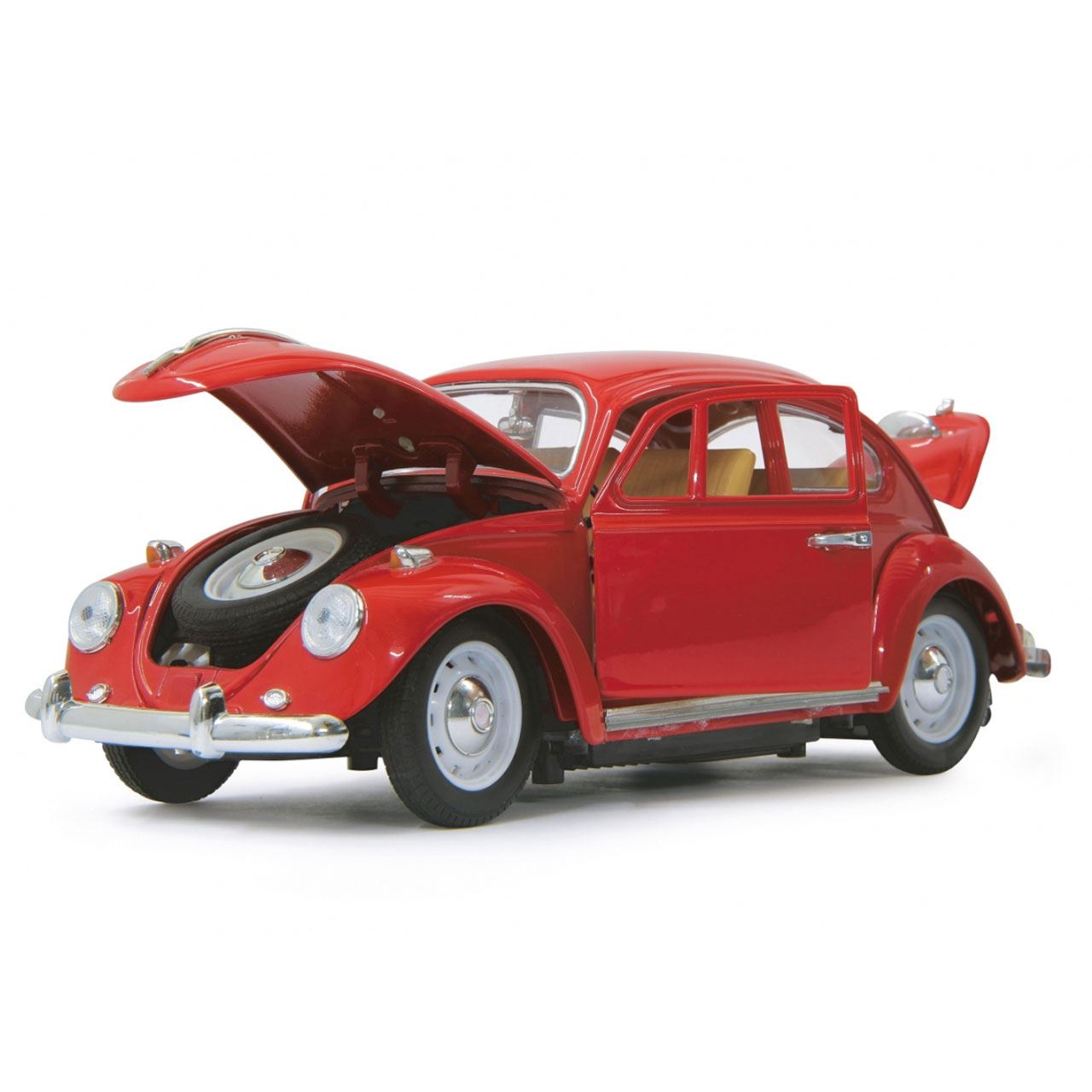 Erinnern Sie sich noch an den legendären VW Käfer? Jetzt können Sie sich und Ihren Kindern ihren Jugendtraum näherbringen. Mit hochwertigem Metallchassis und toller originalgetreuer Optik können Sie das Kultfahrzeug der 50er und 60er Jahre nochmal erleben. Und Beste ist mit der Fernsteuerung können sie den Käfer präzise über das Parkett steuern. Wenn er dann doch mal stehen sollte macht er nicht nur eine gute Figur als Sammlerstück sie können auch alle Türen und Klappen öffnen sogar die Motorhaube und die ist wie Kenner wissen, hinten. Ein Must-Have für Ihre RC-Car Sammlung. Für alle die hochwertiges Spielzeug lieben.