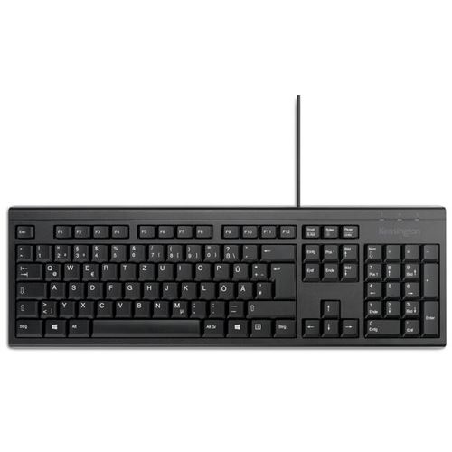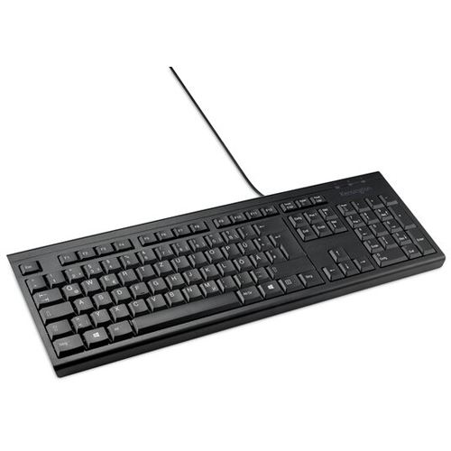 Kensington KB100 EQ Full Size Tastatur. Tastatur Formfaktor: Volle Größe (100%), Übertragungstechnik: Kabelgebunden, Geräteschnittstelle: USB, Tastatur-Switch: Membran Key Switch, Tastaturaufbau: QWERTZ, Empfohlene Nutzung: Heimbüro. Produktfarbe: Schwarz