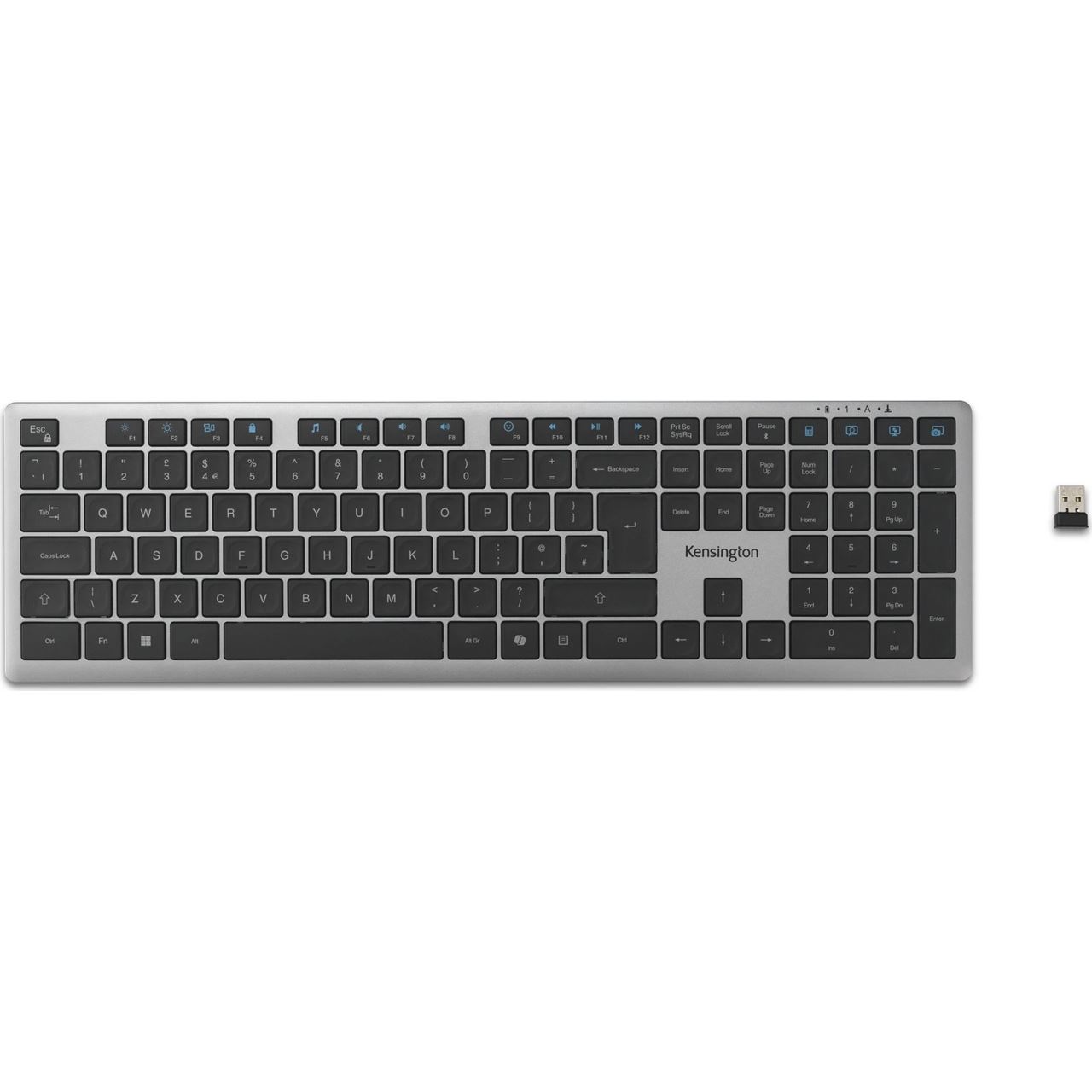 Kensington KB535 EQ. Tastatur Formfaktor: Volle Größe (100%), Übertragungstechnik: Kabellos, Geräteschnittstelle: RF Wireless + Bluetooth, Tastatur-Switch: Scherenschalter, Tastaturaufbau: QWERTY, Tastatur - Tastenanzahl: 110. Kabellänge: 1,8 m. Empfohlene Nutzung: Büro. Produktfarbe: Grau