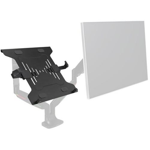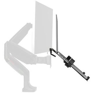 Die universelle Laptophalterung für Monitorarme ist eine stabile und sichere Vorrichtung, die sich leicht an jedem Monitorarm mit einer Standard-VESA® 75/100-Platte befestigen lässt und den Laptop vom Schreibtisch auf Augenhöhe anhebt, wodurch mehr Arbeitsfläche zur Verfügung steht. Unterstützt Laptops bis zu 16 und bis zu 4,5 kg. Verstellbare Klammern und Sicherheitsbügel sichern den Laptop zuverlässig und verhindern, dass er verrutscht. Ein offenes Design fördert die Luftzirkulation und das Kühlen des Laptops.