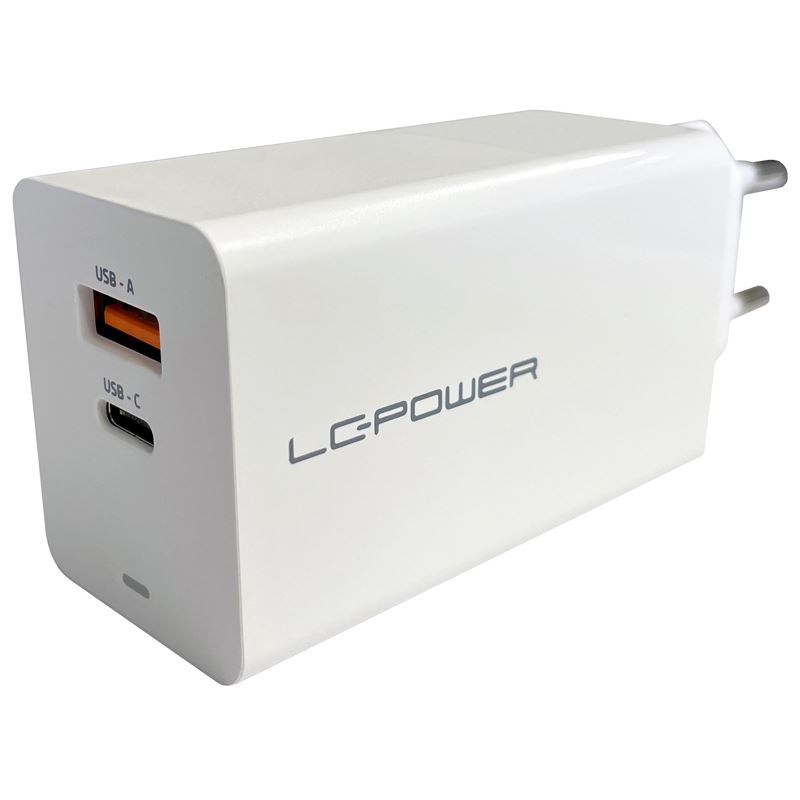 LC-Power LC-GAN-65. Aufladetyp: Drinnen, Energiequelle: AC, Aufladekompatibilität: Universal. Eingangsspannung: 110 - 240 V. USB Typ-C Anzahl Anschlüsse: 2, Schnellladung, Energieschutzeigenschaften: Überstrom, Überspannung, Überhitzung, Überlastschutz, Kurzschluß. Produktfarbe: Weiß