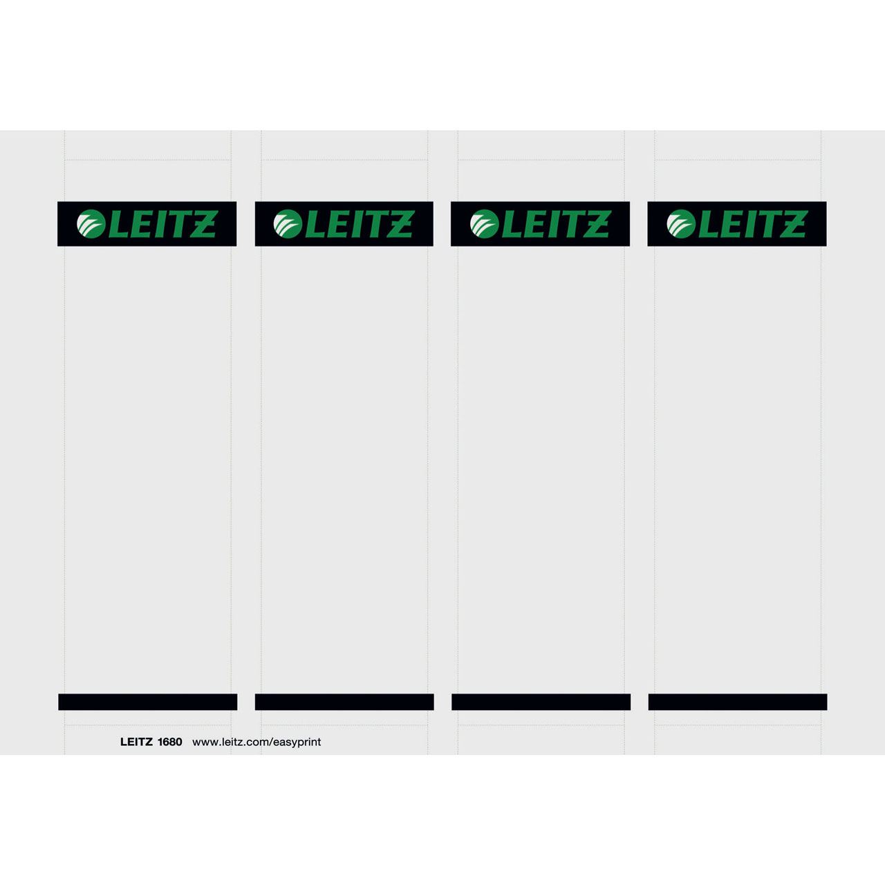 Leitz PC-beschriftbare Rückenschilder für Qualitäts-Ordner 180° Plastik. Produktfarbe: Grau, Zweck: Ordner, Medienanzahl pro Paket: 25 Blätter. Etikettenbreite: 5,6 cm, Tiefe: 190 mm. Aufkleber pro Satz: 100 Stück(e), Haftetiketten pro Blatt: 4 Stück(e)