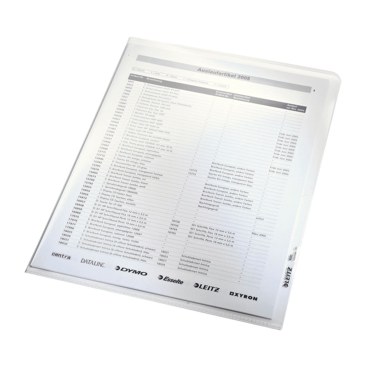 Leitz 40200003. Format: 210 x 297 mm (A4), Produktfarbe: Transparent, Material: Polypropylen (PP). Breite: 220 mm, Dicke: 1 mm, Höhe: 313 mm